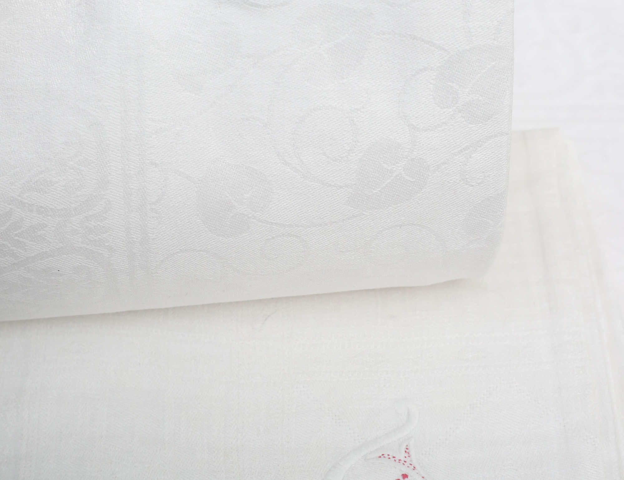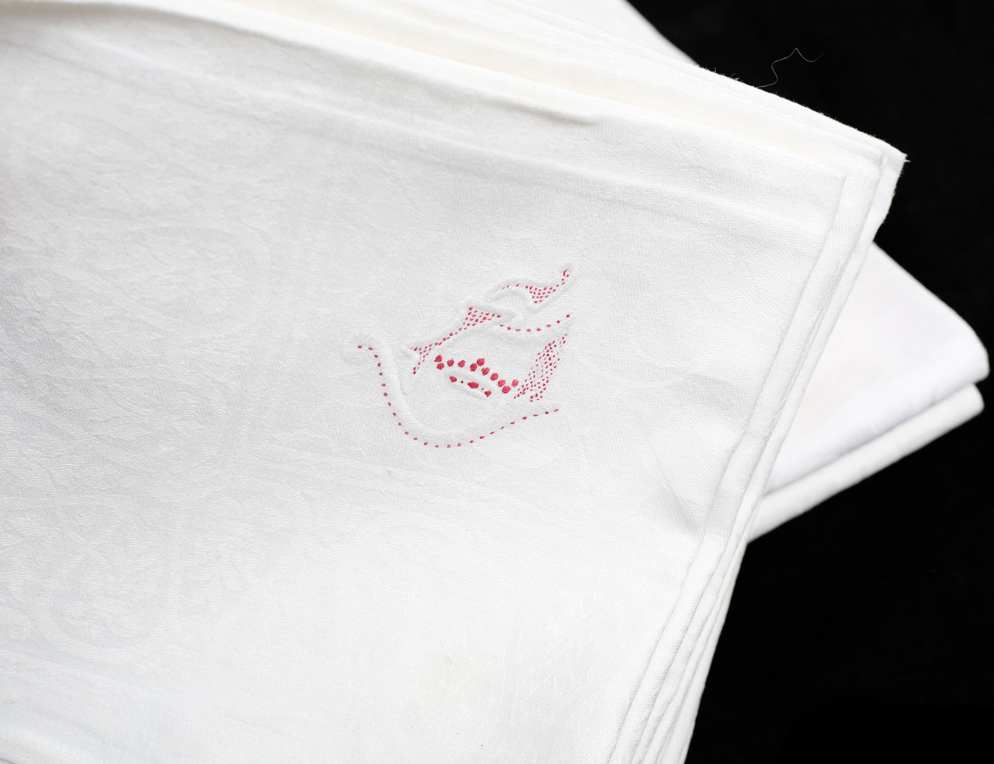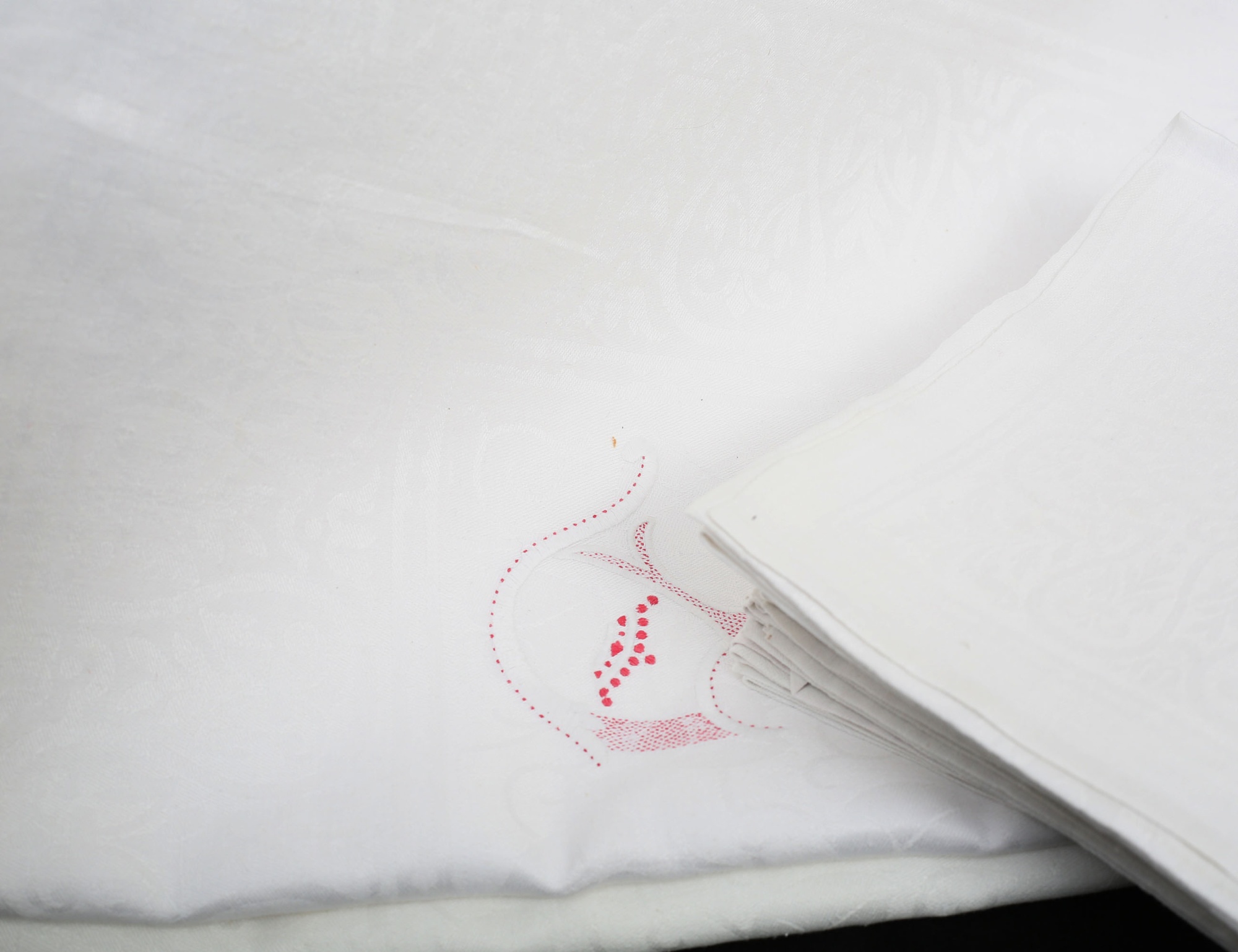 2 dukar samt 10 servetter, linnedamast, sinnrikt monogram, 180x235, 60x60 (12)