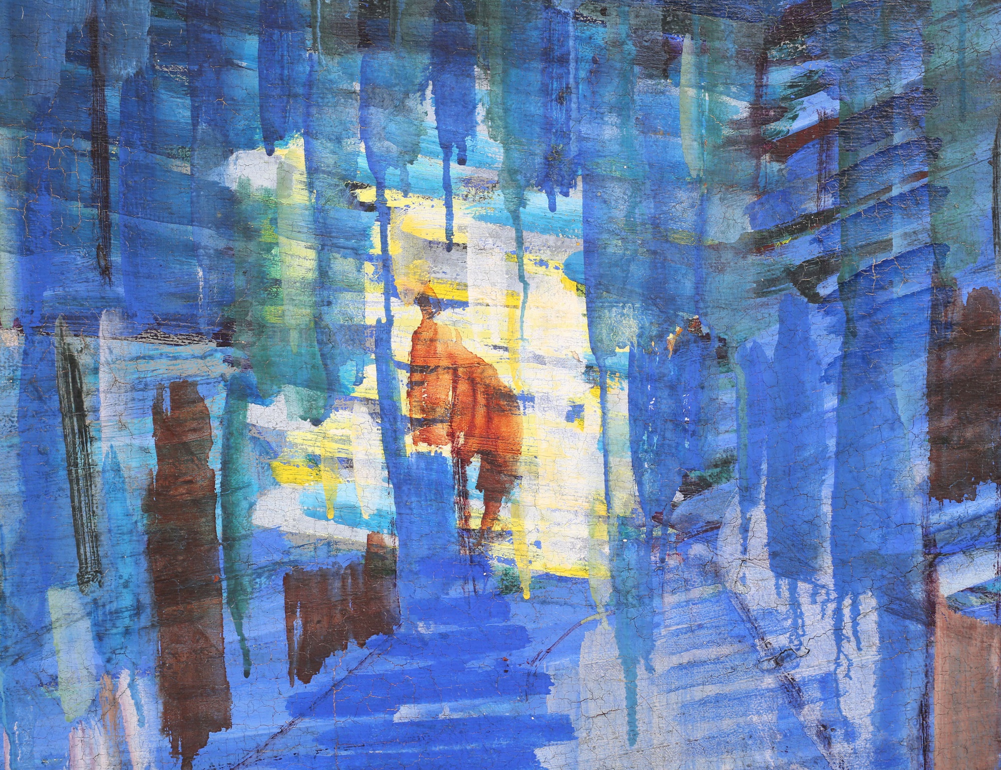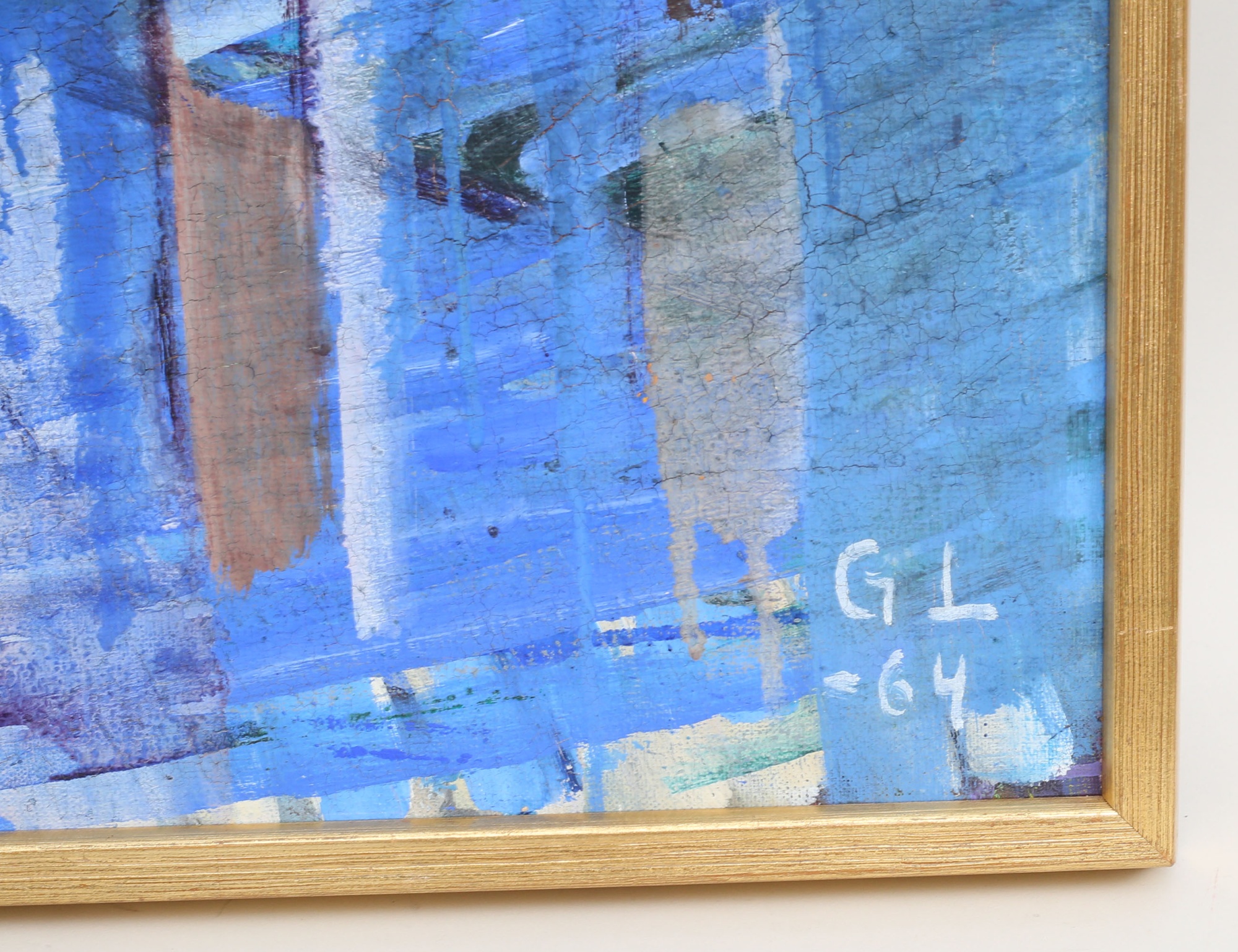 oljemålning på duk, komposition i blått, monogramsignerad GL -64, 49x70, rammått 53x74
