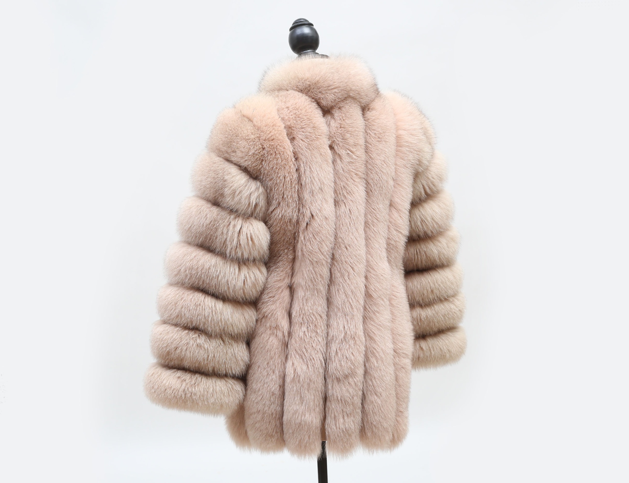 räv samt lammskinn, går även ha som väst - avtagbara ärmar, storlek S, rygglängd 78