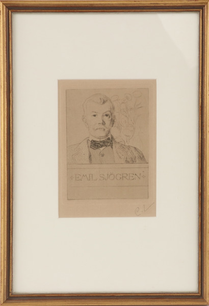 Etsning, "Emil Sjögren". Monogramsignerad i blyerts. Inramad.