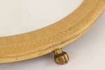 Förgylld brons. Med bladdekor. På tre lejontassar.