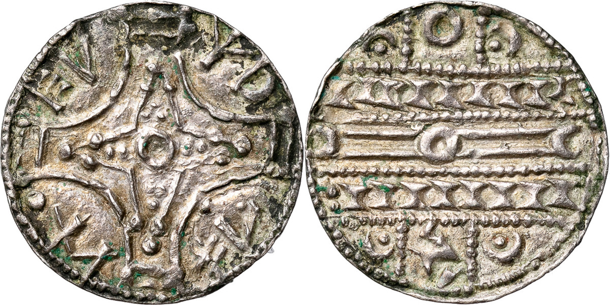 DANMARK / DENMARK. Sven Estridsen (1047-1075). ROSKILDE. Penning, with text written in runes, blundered. Hbg 39a. 0,89 g. Frånsidan något svagpräglad. Vacker patina. Reverse somewhat weakly struck. Beautiful patina.