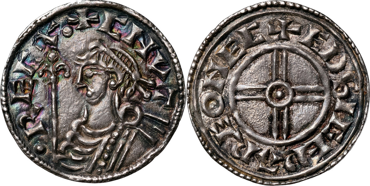 ENGLAND. Cnut (1016-1035). EXETER. Penny. Short cross type, 1029-1035. Diademed bust left with scepter )( Short cross. +CNVT RECX )( +EDSIGE PARE ON EC. Spink 1159. HA 383. 1,12 g. Praktexemplar med exceptionell patina. Choice with magnificent patina.