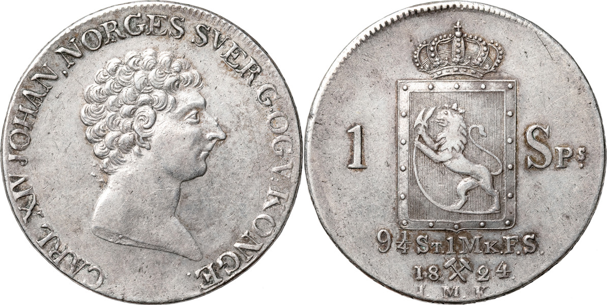 Bilder NORGE / NORWAY. Karl XIV Johan (1818-1844). Speciedaler 1824