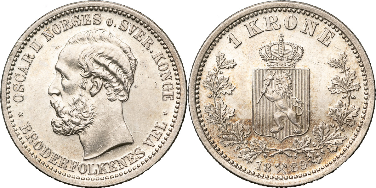 NORGE / NORWAY. Oskar II (1872-1905). Krone 1889
