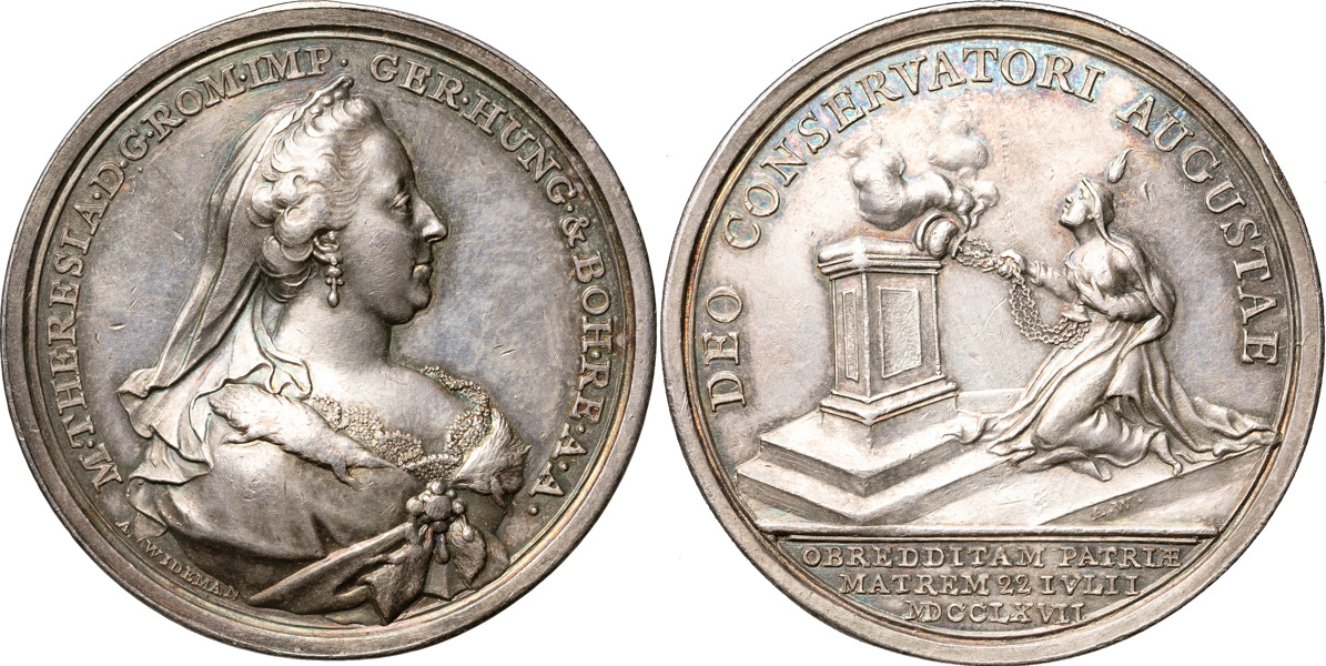 Auktioner TYSK-ROMERSKA RIKET-ÖSTERRIKE / THE HOLY GERMAN EMPIRE-AUSTRIA . ÖSTERRIKE. Maria Theresia (1740-1780). Genesung von den Pocken 1767