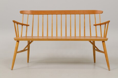 Bilder Pinnsoffa, 1900-talets andra hälft, sits fanerad i teak, längd 128 cm