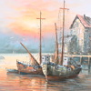 Bilder Max Savy (Frankrike, 1918-2010), Hamnmotiv, olja på duk, signerad.