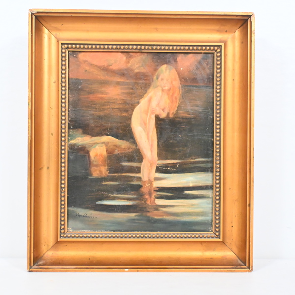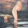 Bildmått 26 x 21,5 cm. Naken ung kvinna vid vattenkanten.