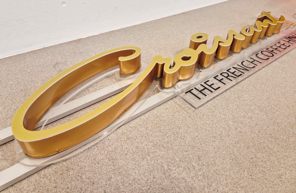 Ljusskylt CroissantYttermått: 205x37cmMått på texten: 155x 37cmAnmärkning: Elen bör bytas