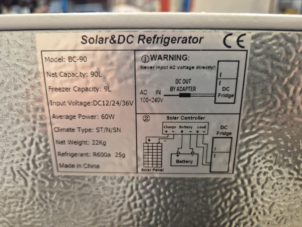 Kylskåp med frysfack 12v/24v/36v, för husvagn, husbil eller offgridMått: 44,5x50x79cmVolym: 90LFunktionstestad: Ok