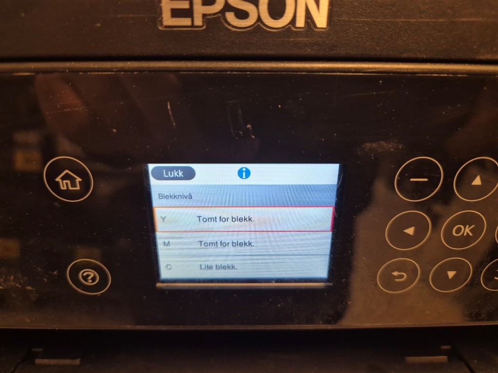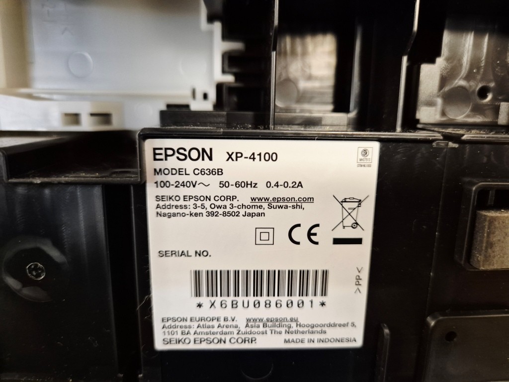 Kombiskrivare EpsonModell: XP-4100Anmärkning: Slut på bläck