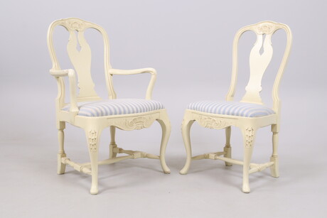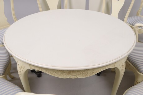 Bilder Matbord, 8 stolar, 2 karmstolar, Rokoko-stil, 1900-tal, Bordets diameter 115 cm + 2 iläggsskivor