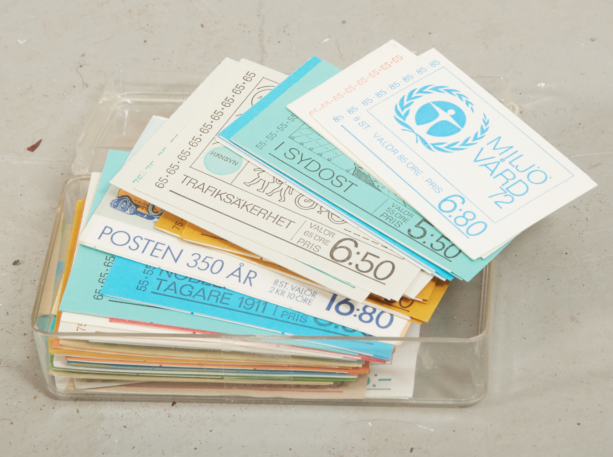 10 album. 3 st Sverige 1855-1975. 1 st FN postfriskt 1951- 1973. Samling sport, häften mm postfriskt. Nominal ca 500:-