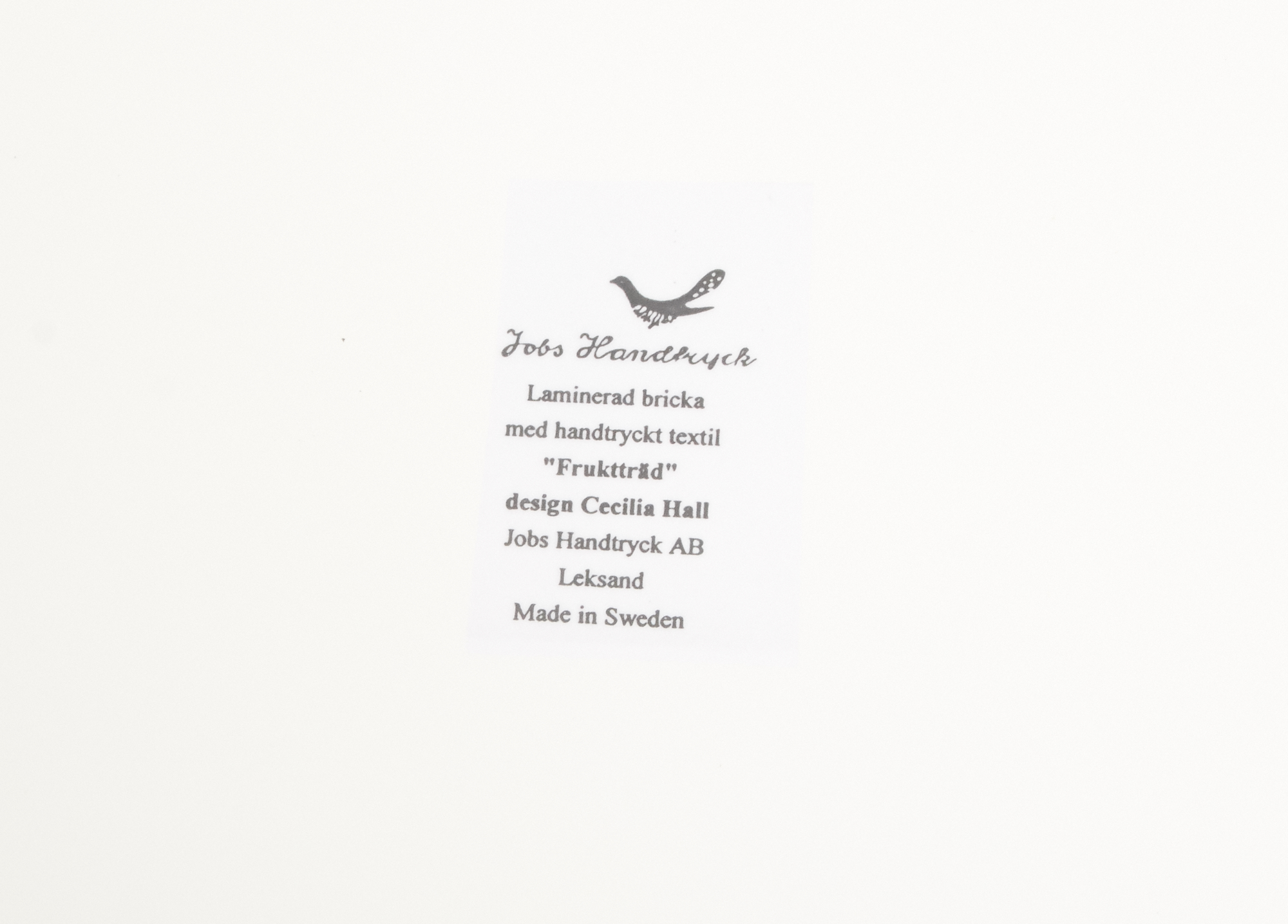 Nyare tillverkning, löstagbar bricka "Fruktträd", design Cecilia Hall, Jobs Handtryck AB, diam 47 cm, höjd 64 cm, smärre bruksslitage.
