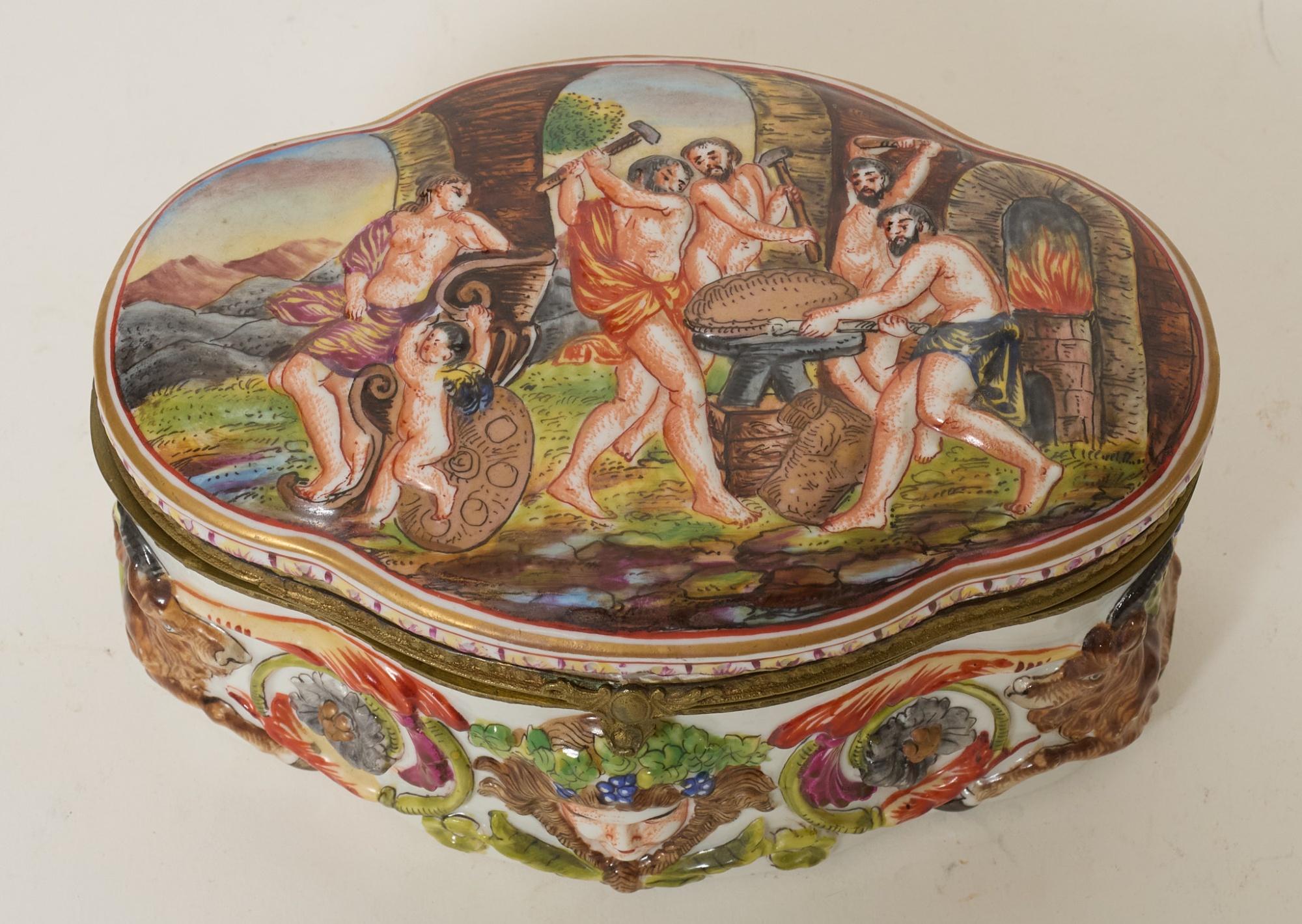 Handmålad dekor, höjd 10 cm, längd 17 cm, smärre bruksslitage.