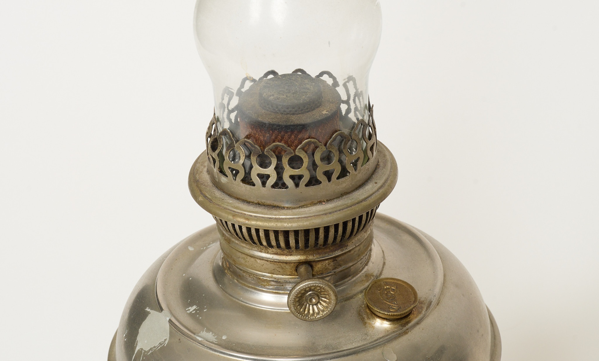 Fot i metall, höjd inkl brännrör 54 cm, bruksslitage.