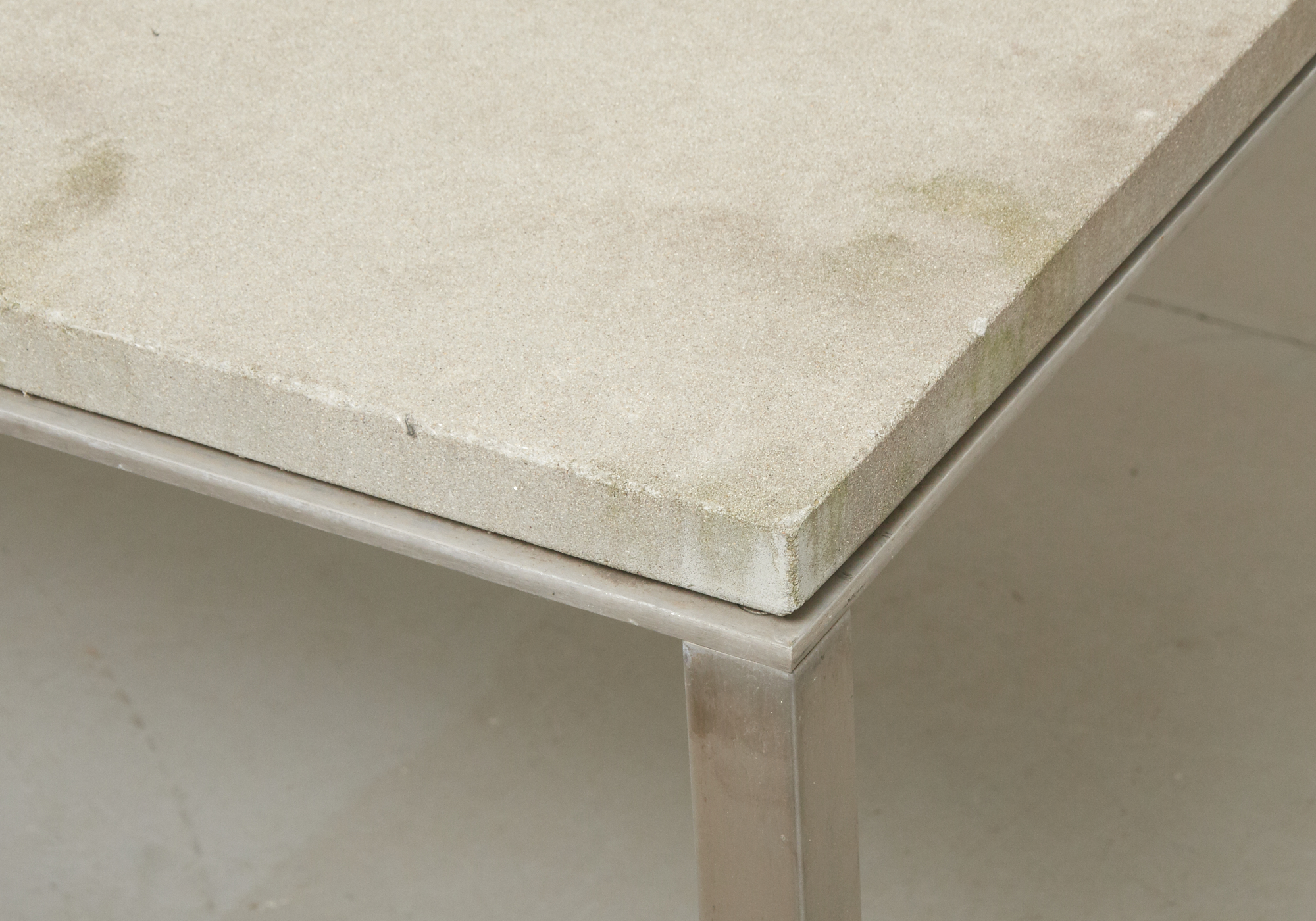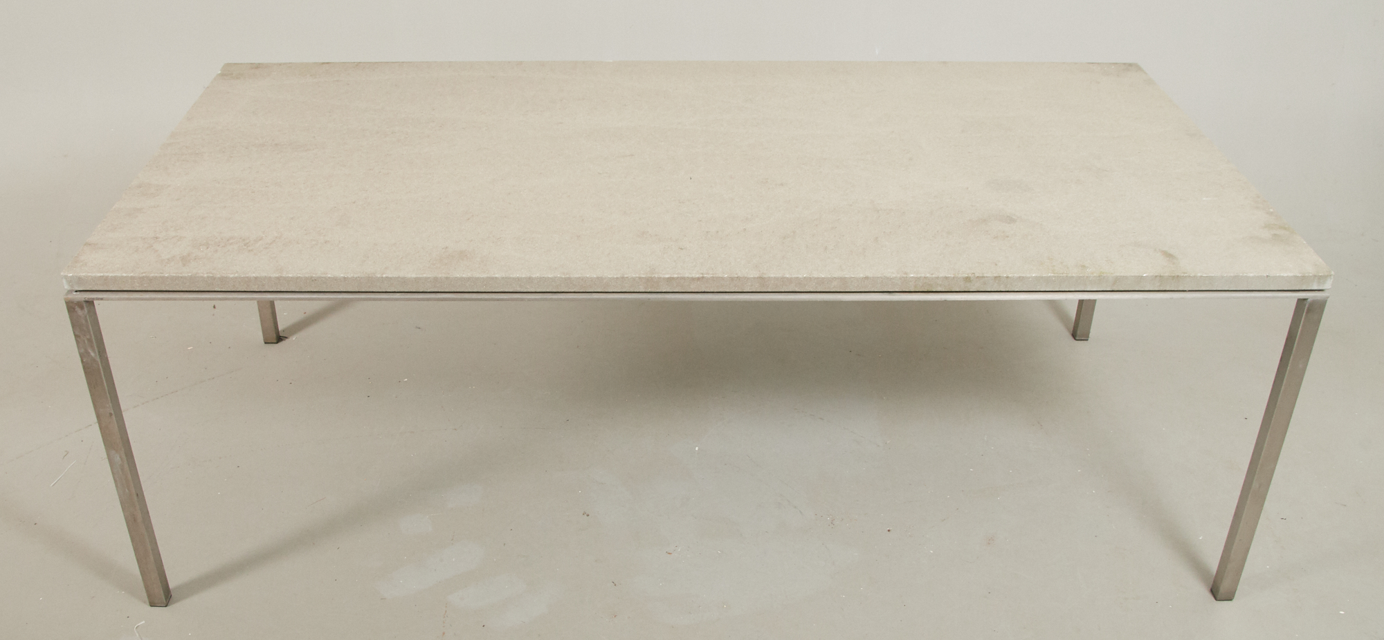 Nyare tillverkning, stomme i aluminium, skiva i keramik, 210 x 57 cm, höjd 74 cm, smärre bruksslitage.