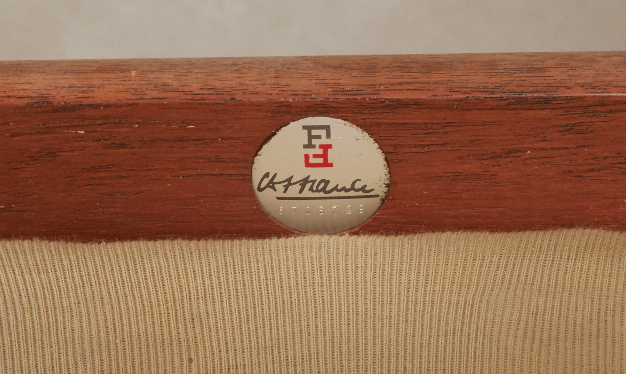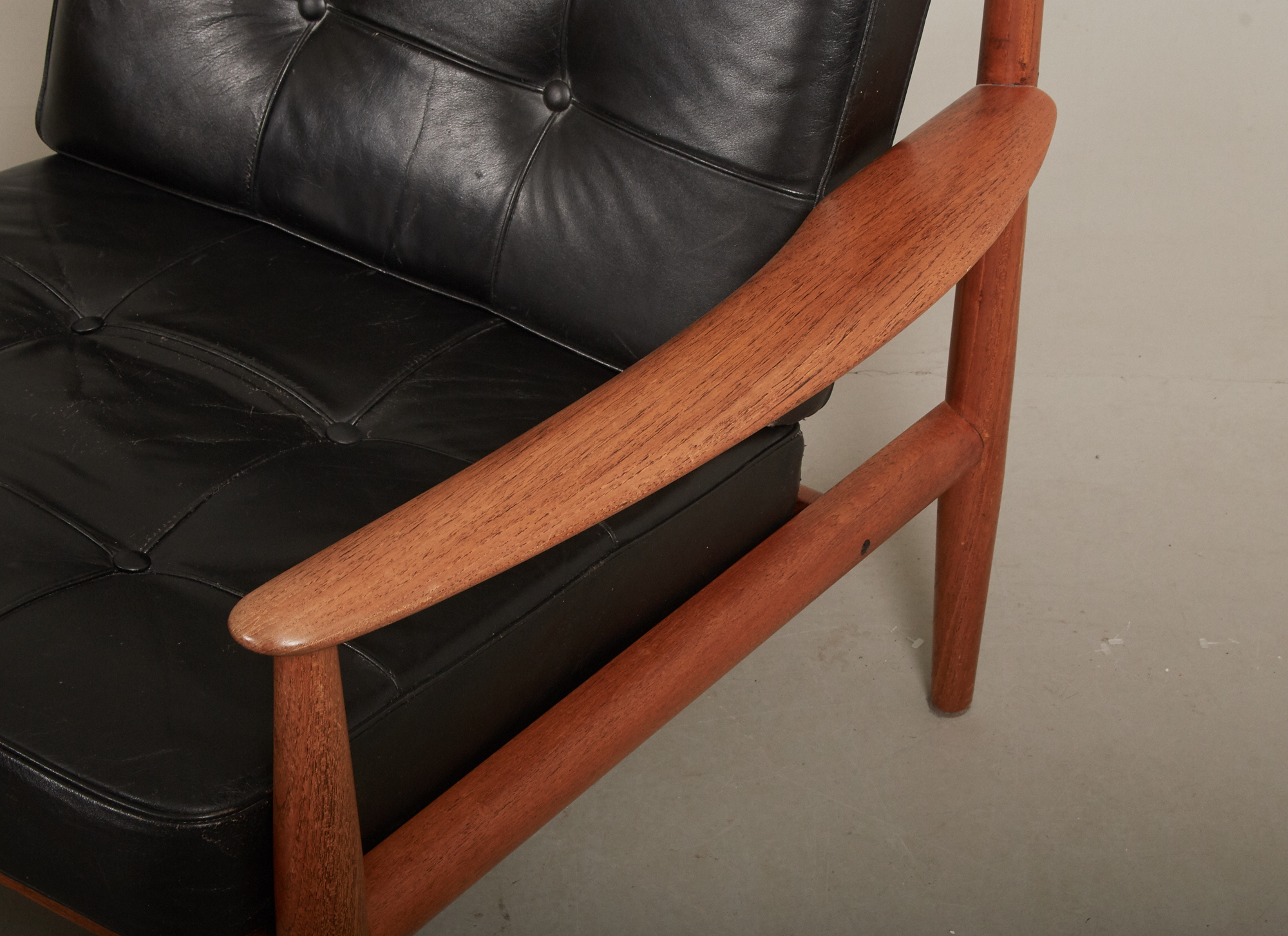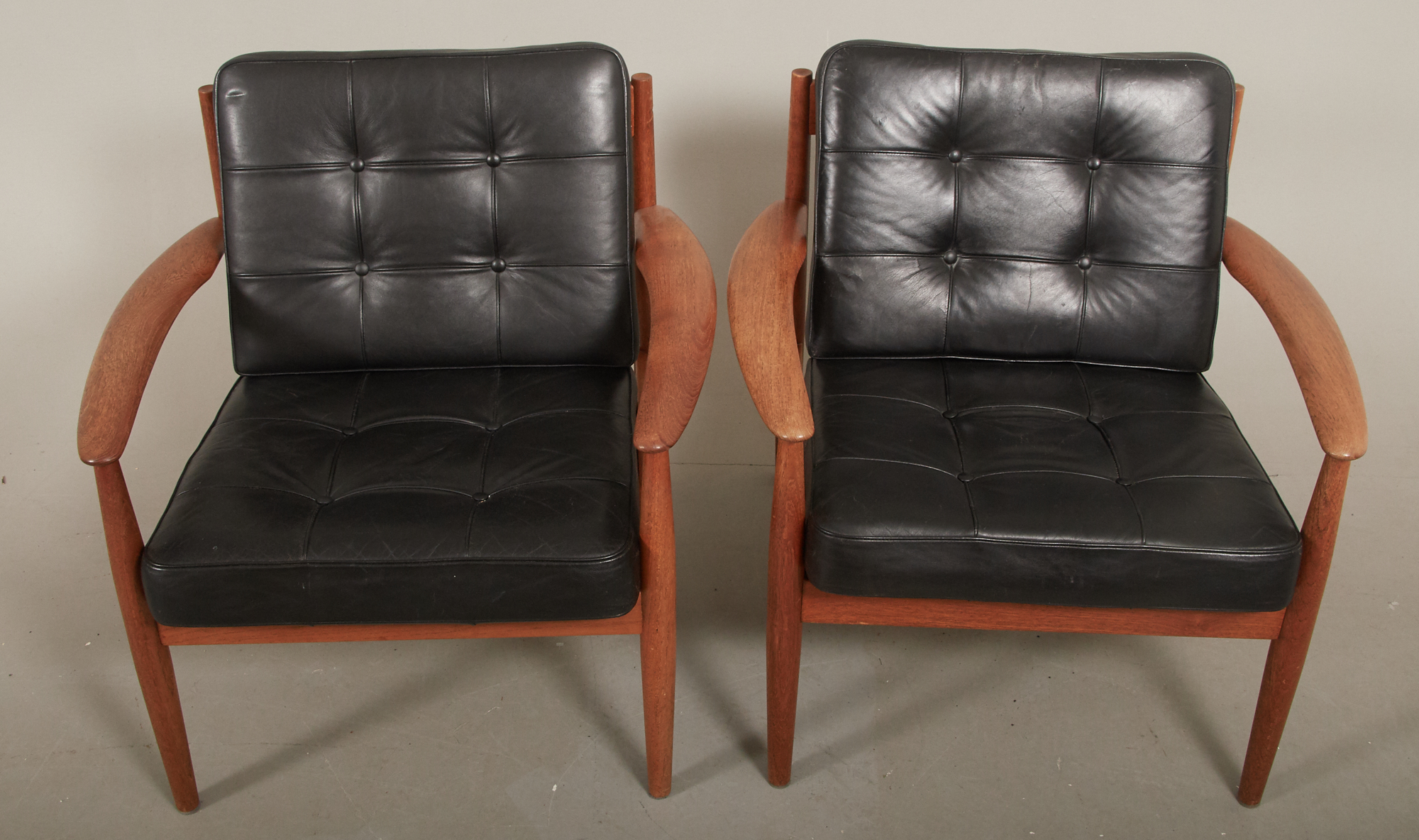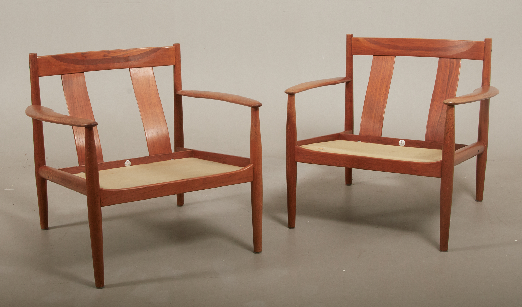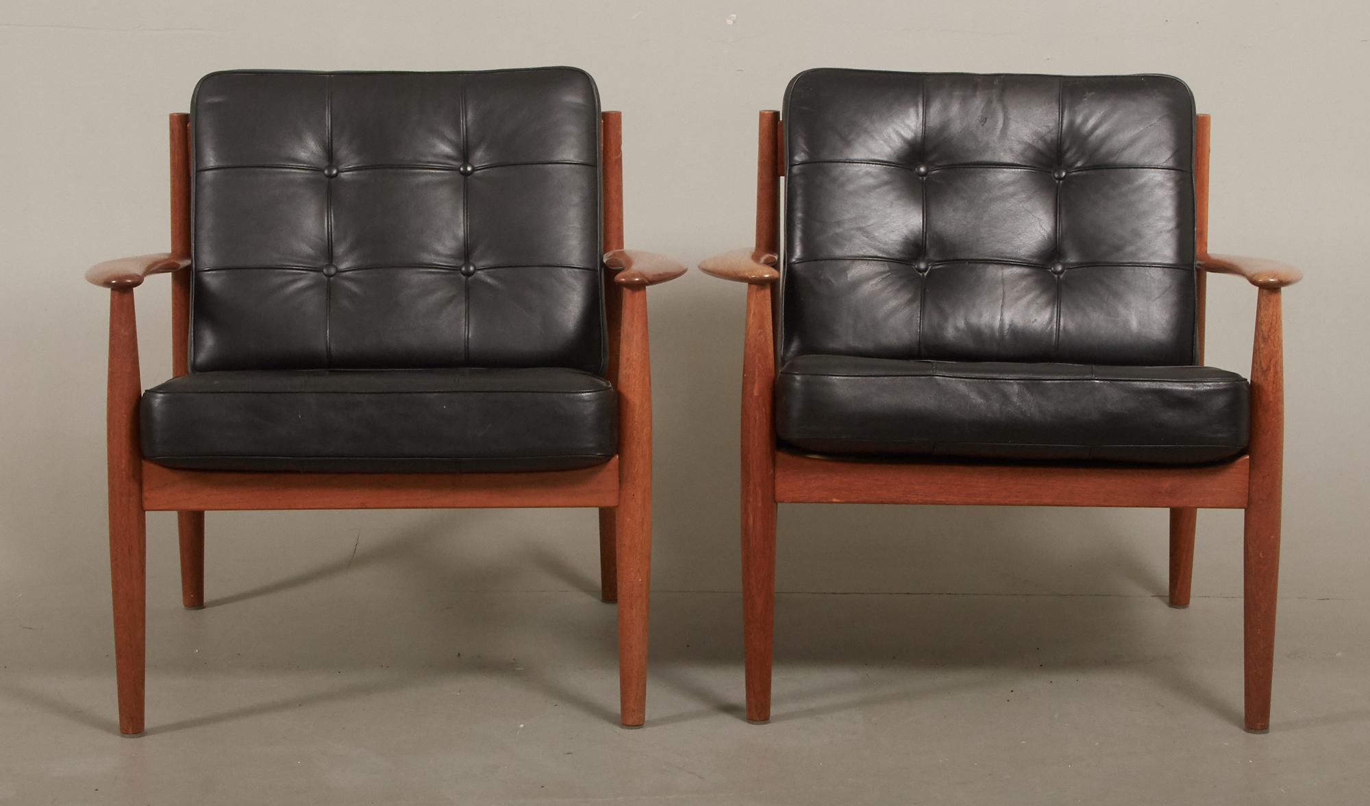 2 st, stomme i teak med läderklädda sitsar, plakettmärkta. Bruksslitage.