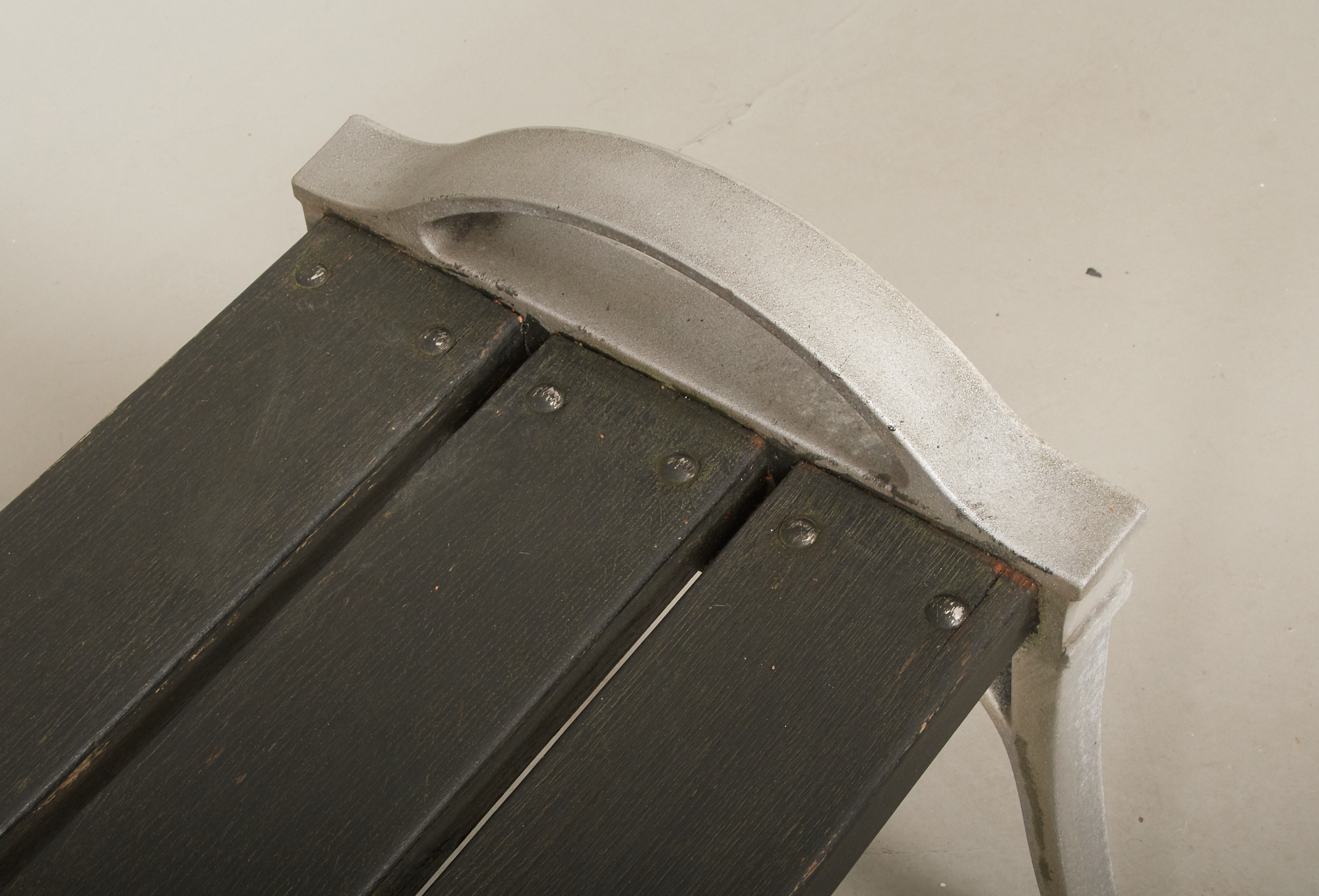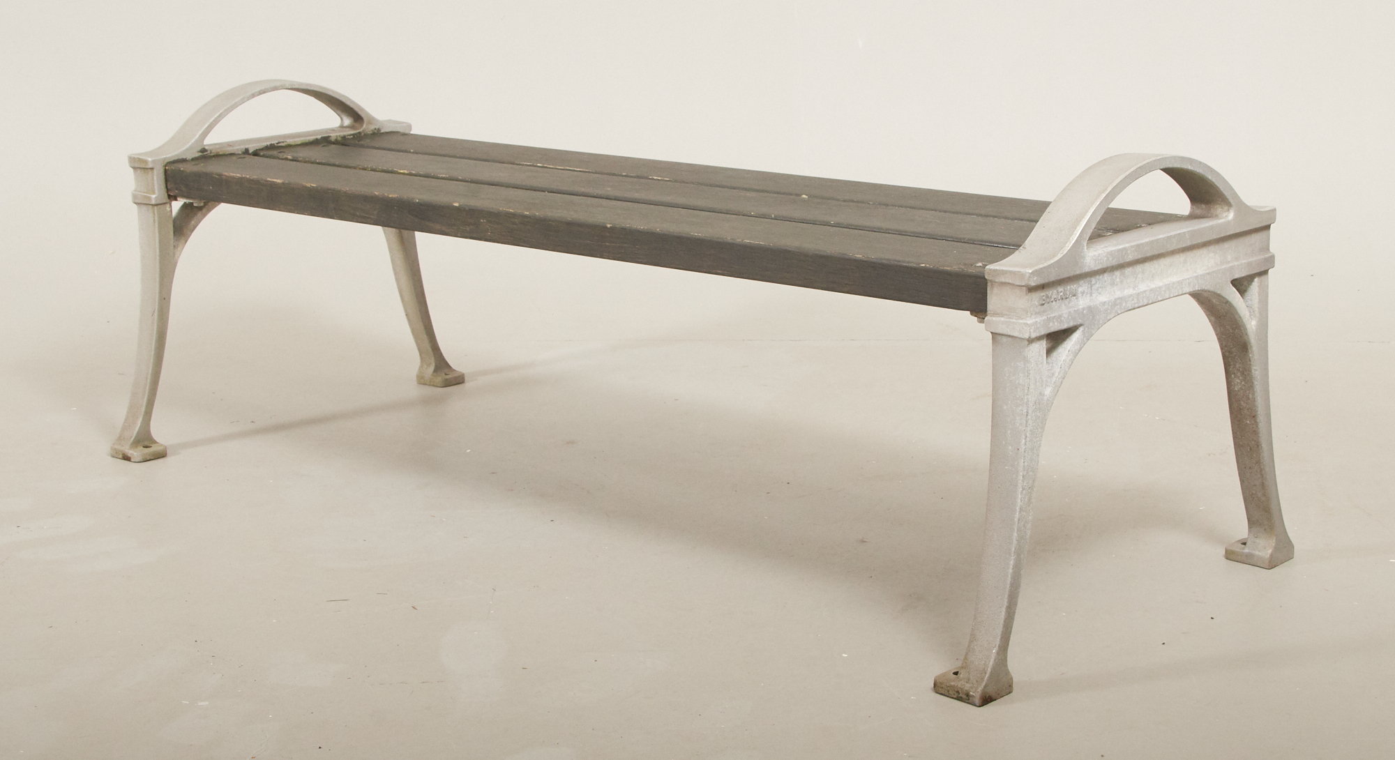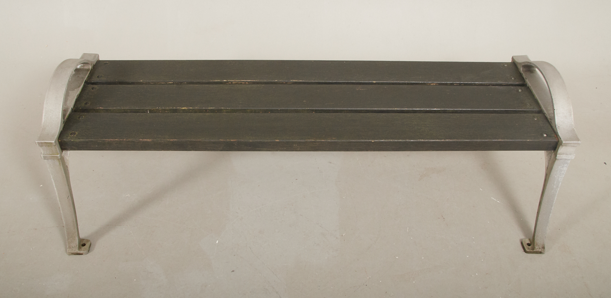 Svartlaserat trä samt aluminium, längd ca 162 cm, höjd 43 cm. Bruksslitage, torrsprickor.