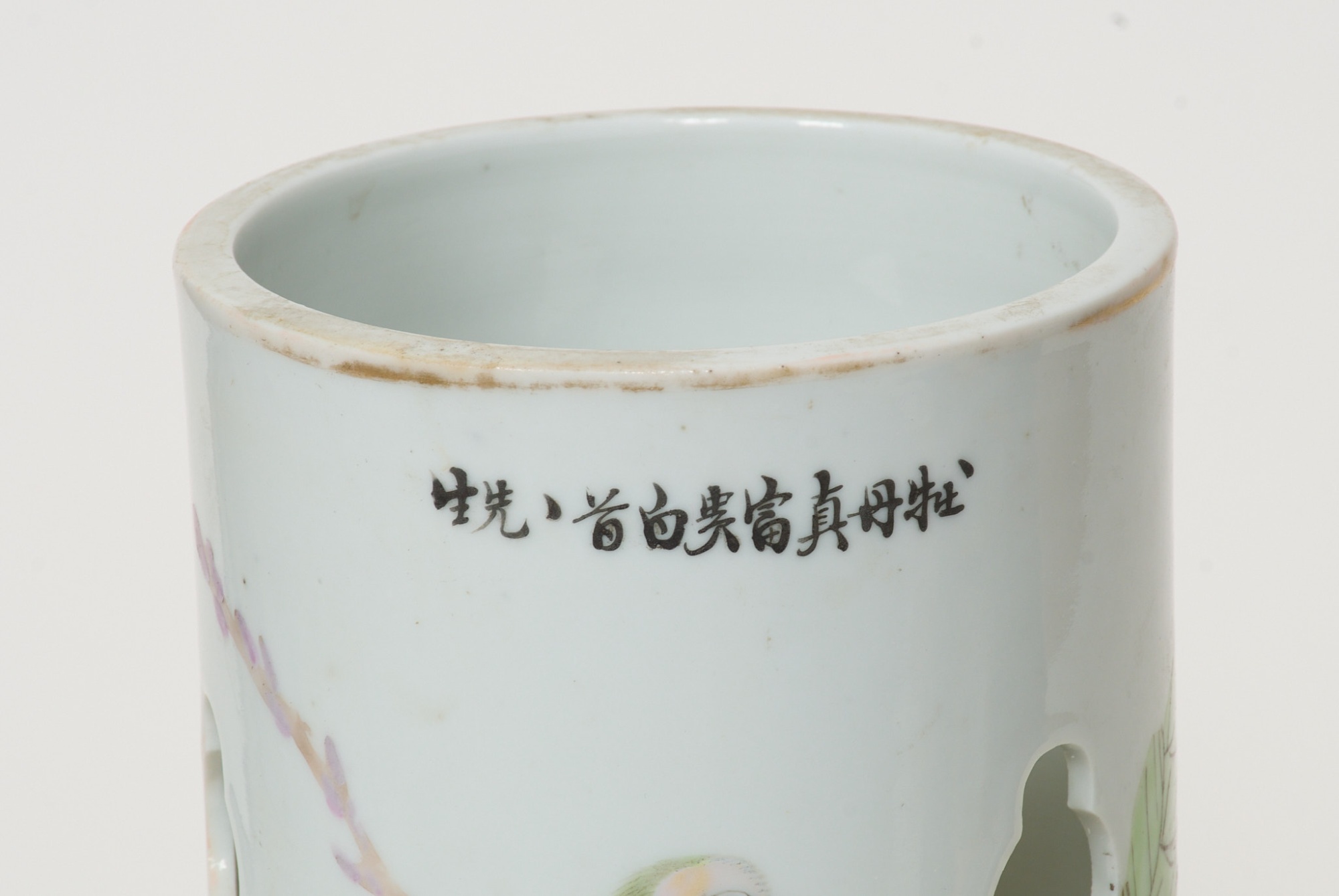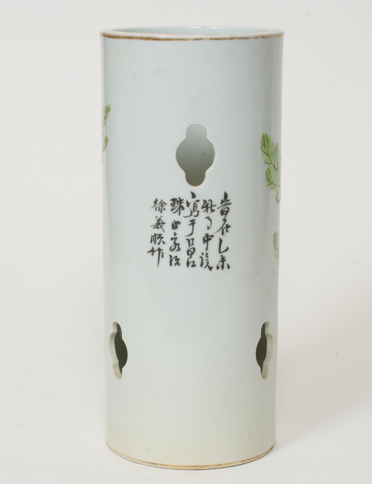 Polykrom dekor, med blomster och fåglar, höjd ca 30 cm, smärre slitage, visst dekorslitage.