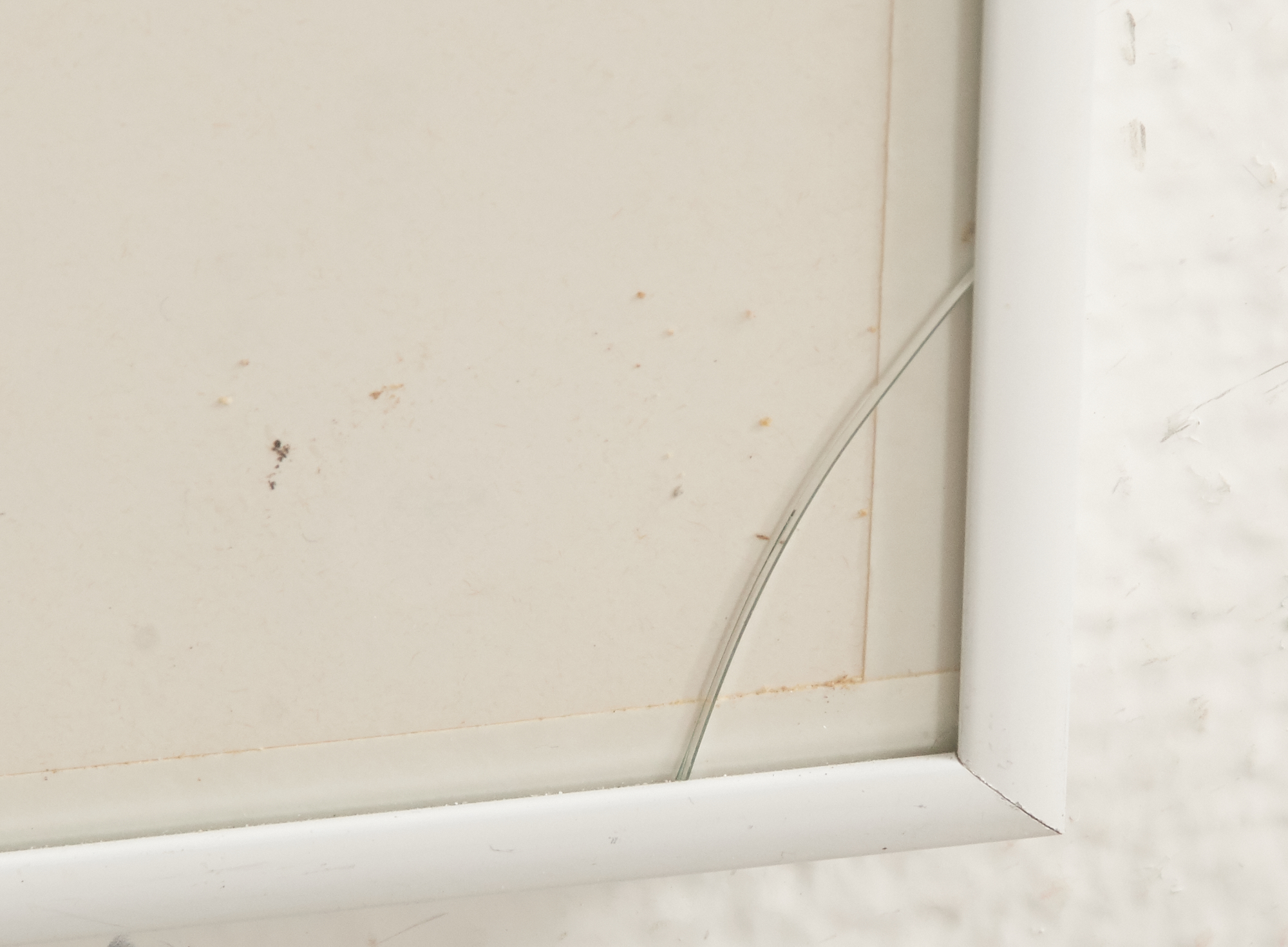 Signerad i trycket, 70 x 100 cm. Skada i glaset.