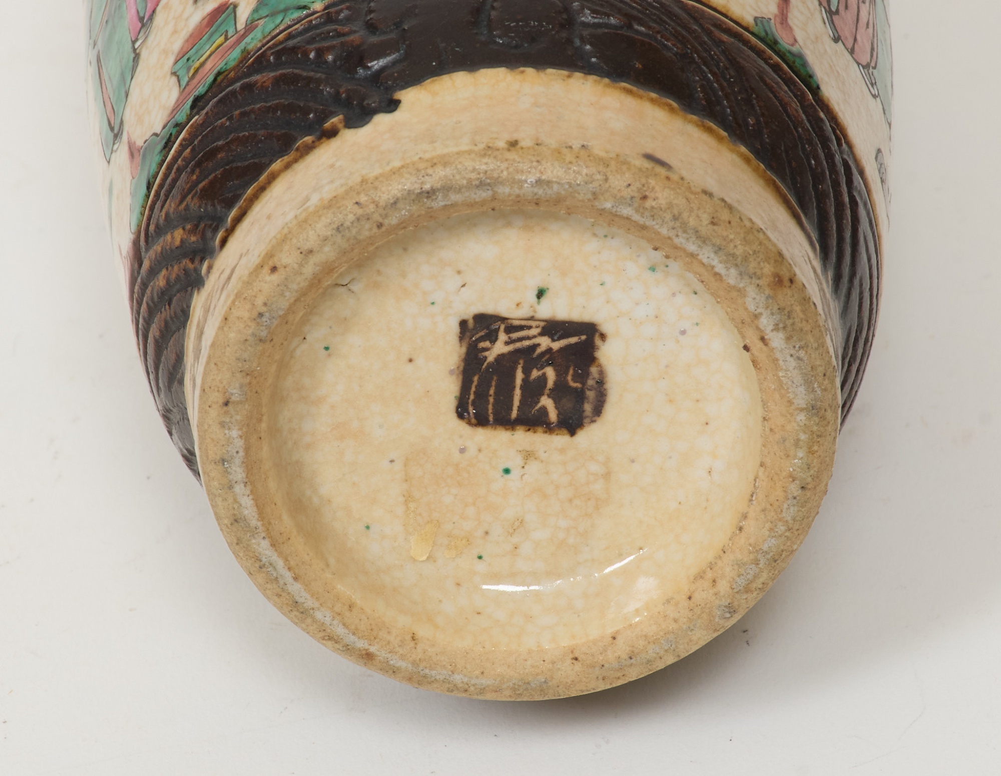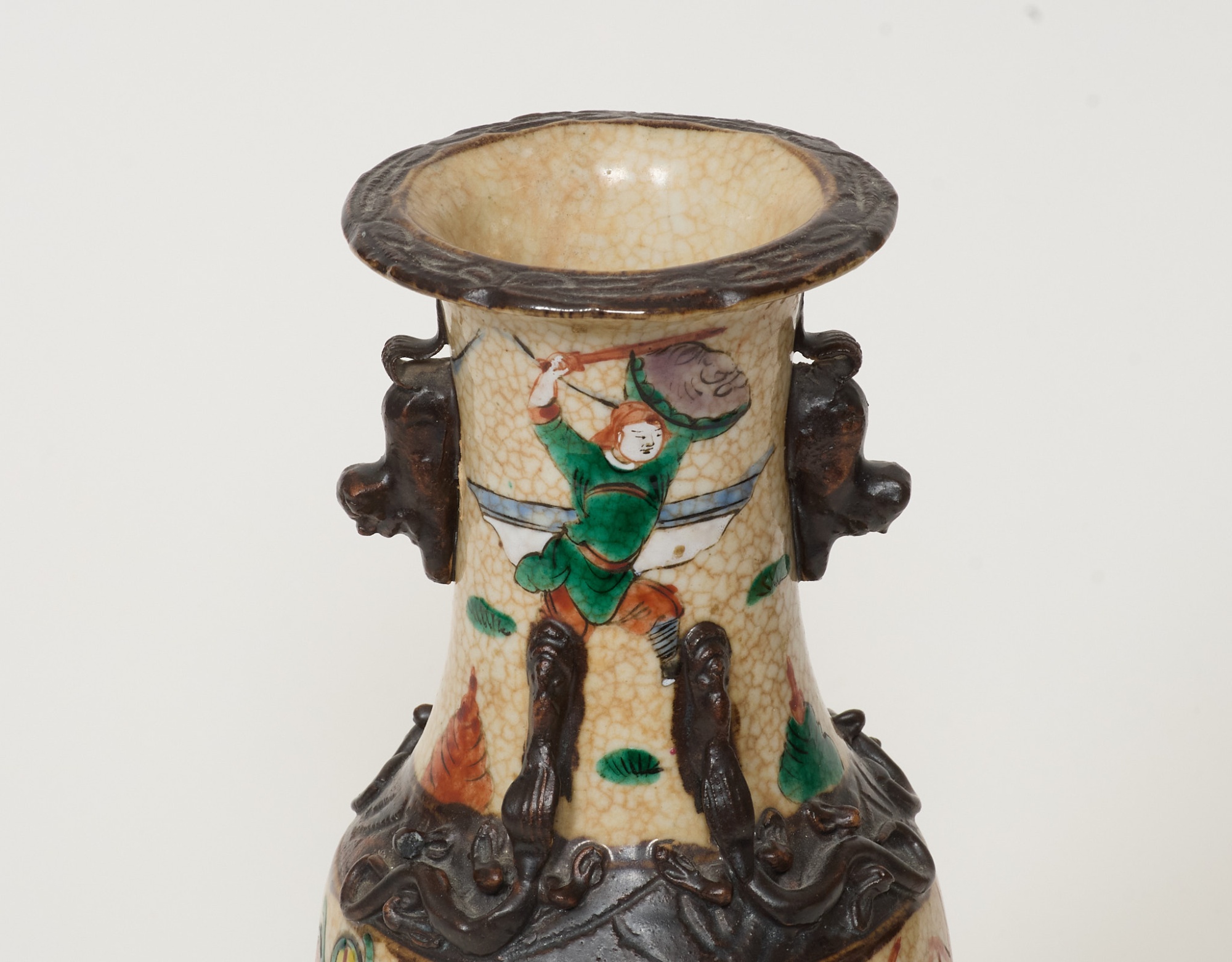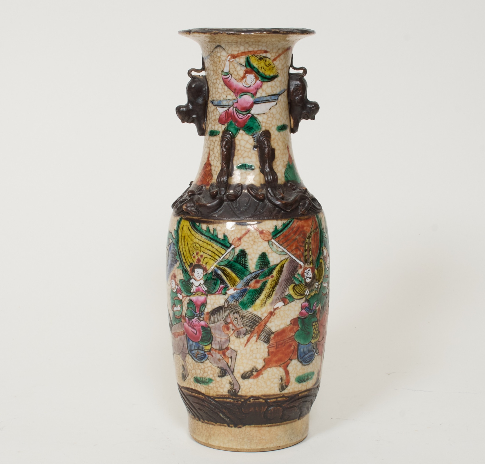 Krackelyrglasyr med polykrom dekor med figurscener, höjd 30 cm, smärre bruksslitage.