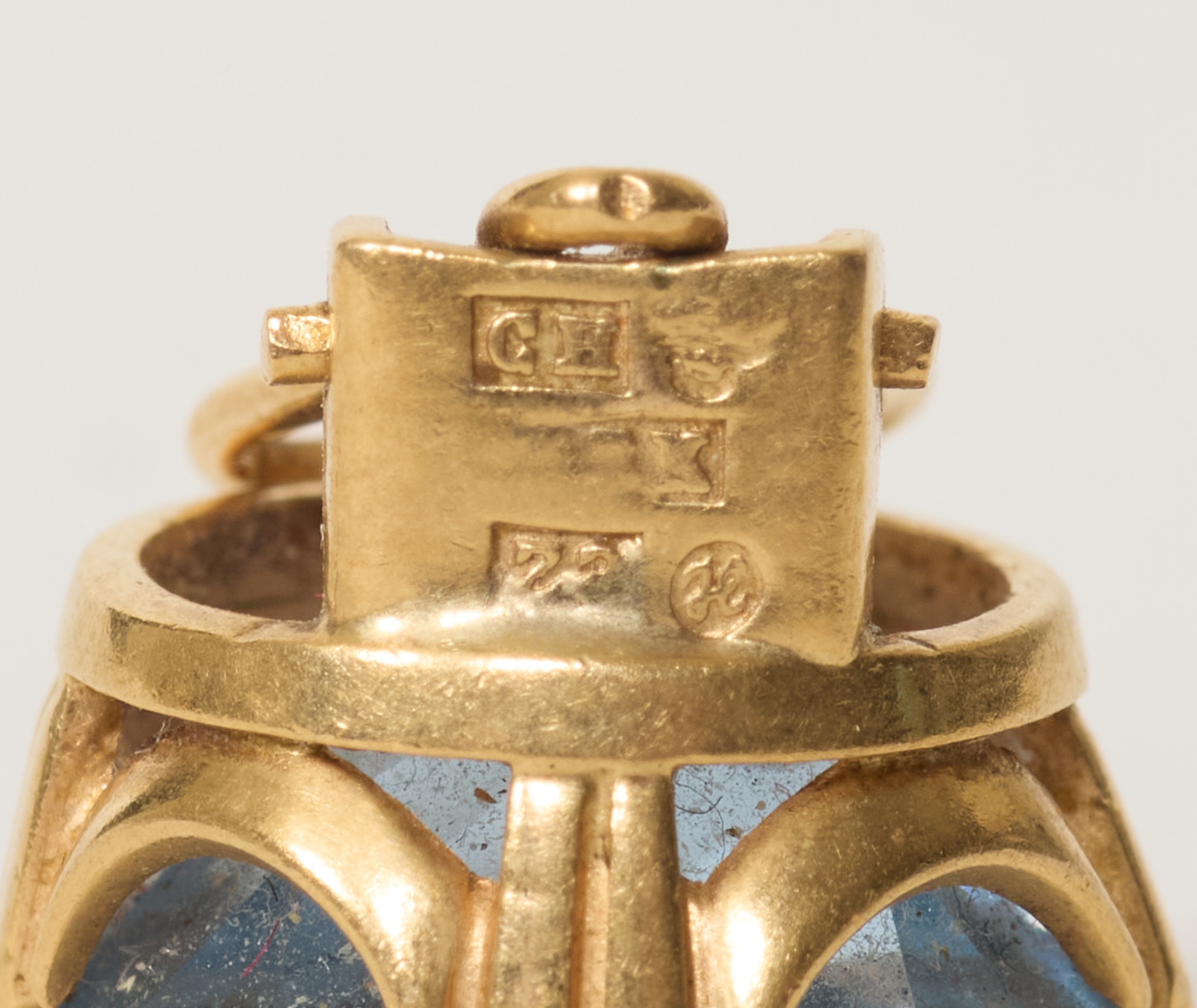 Ett par, med blåa stenar, diam 13 mm, tot.vikt 8,5 gram, smärre bruksslitage.