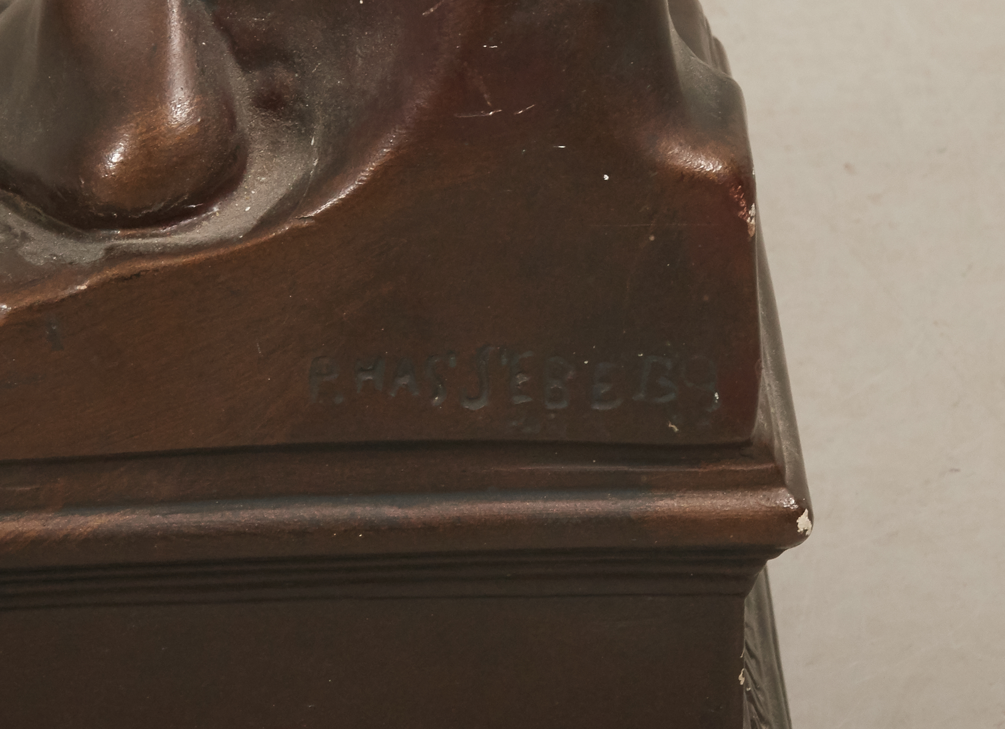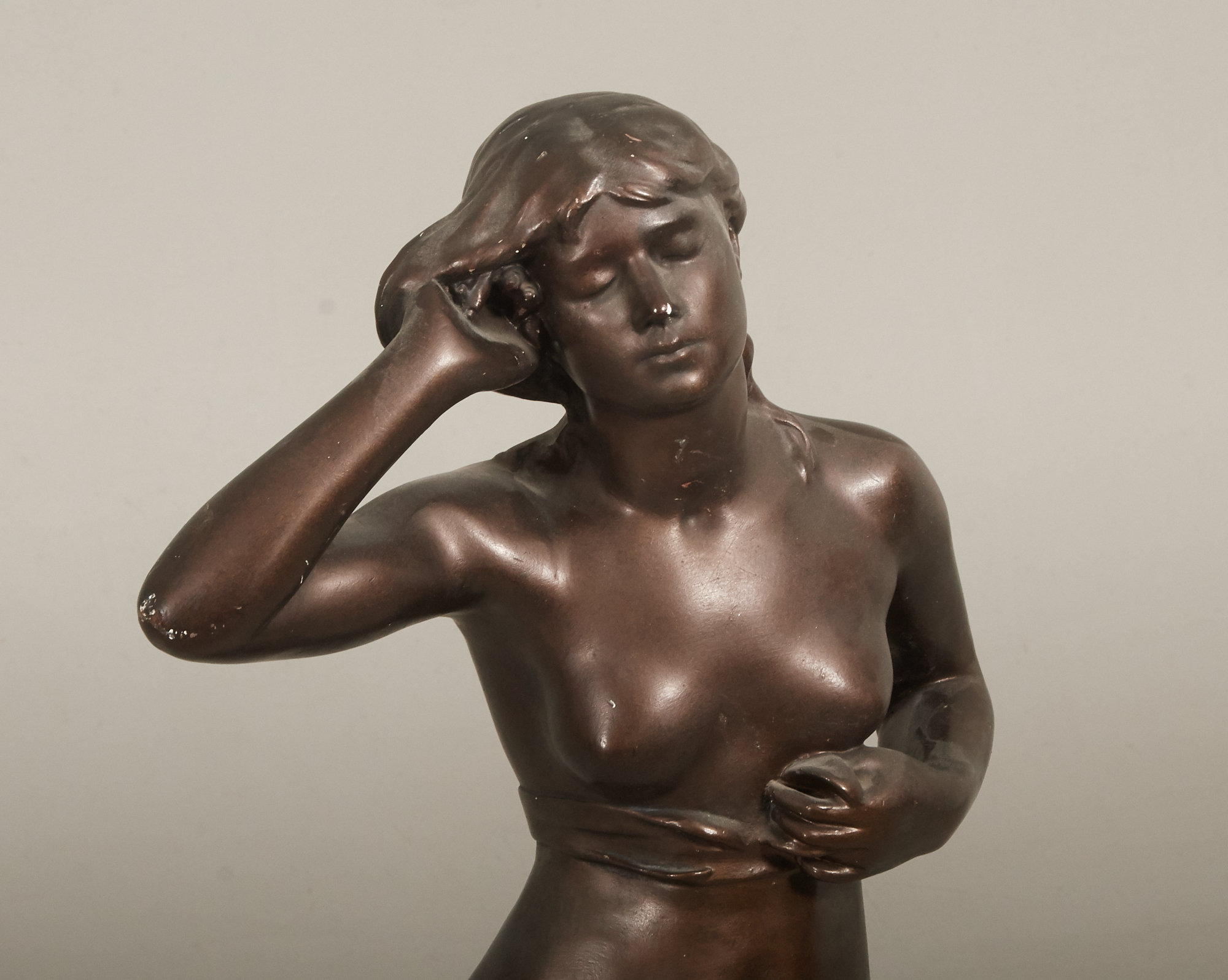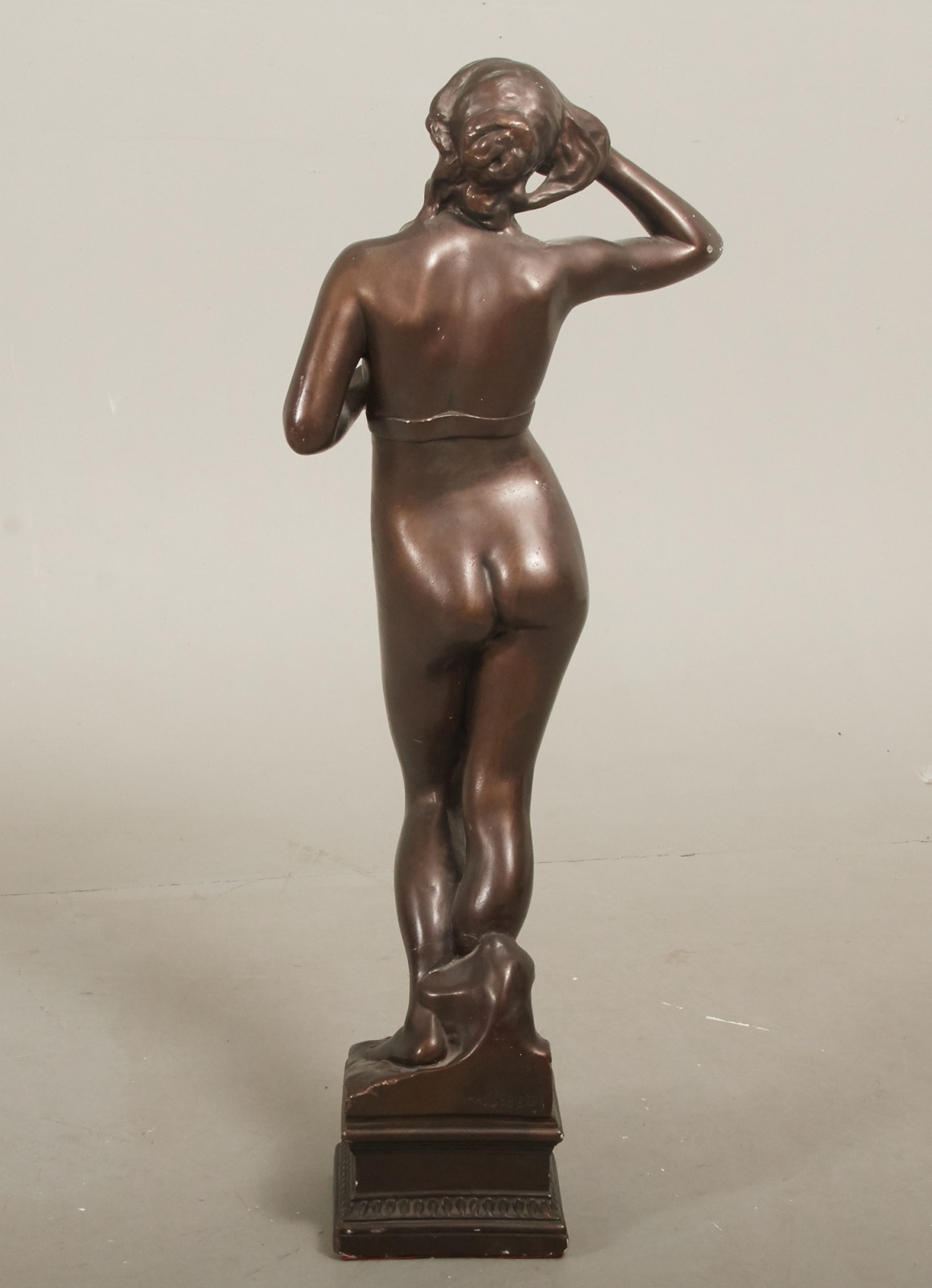 Bronserad gips, Signerad. Höjd ca 95 cm.Åldersrelaterat bruksslitage, lagning, nagg.