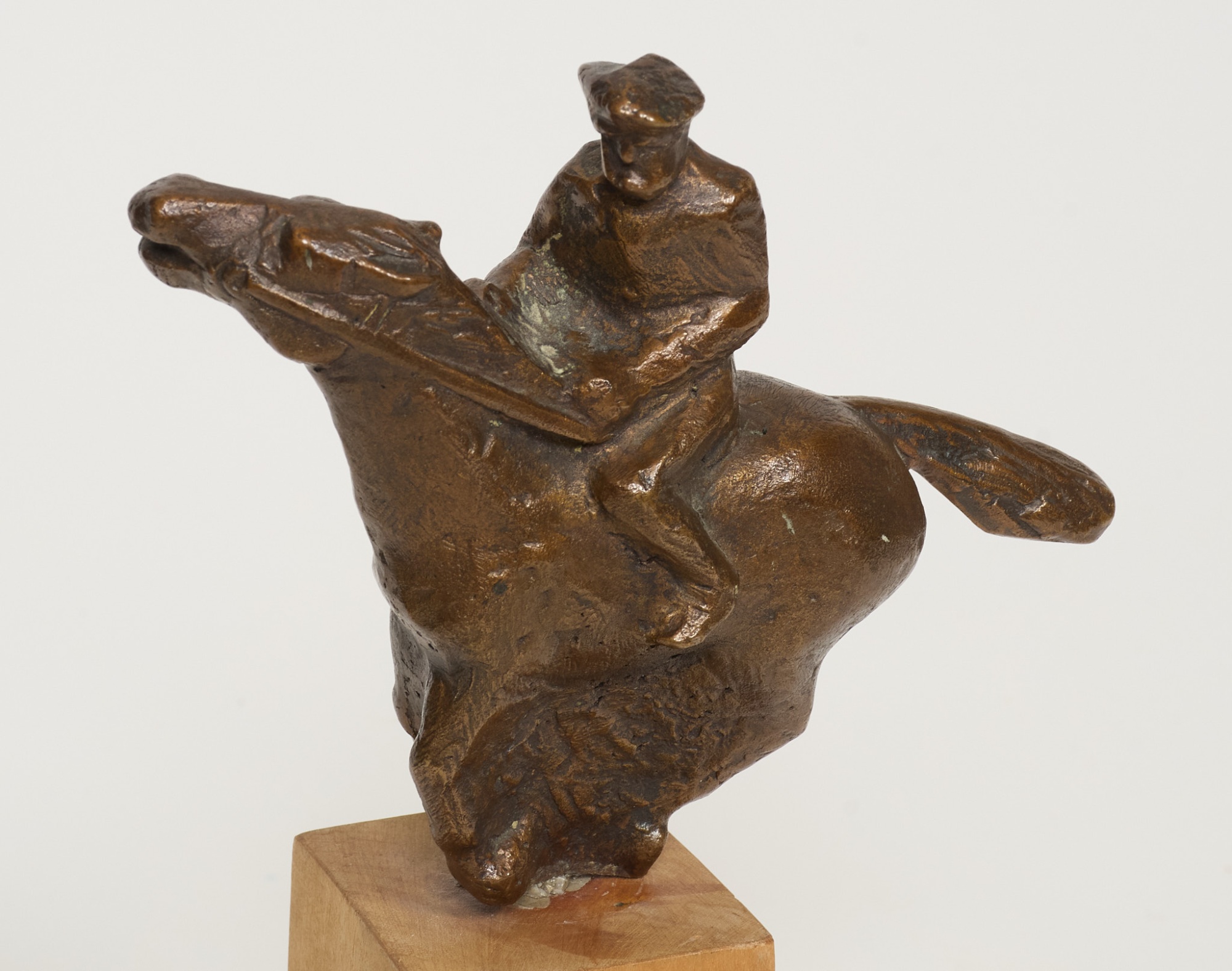 Häst, brons, osignerad, höjd inkl. sockel i trä 25 cm, smärre ytslitage