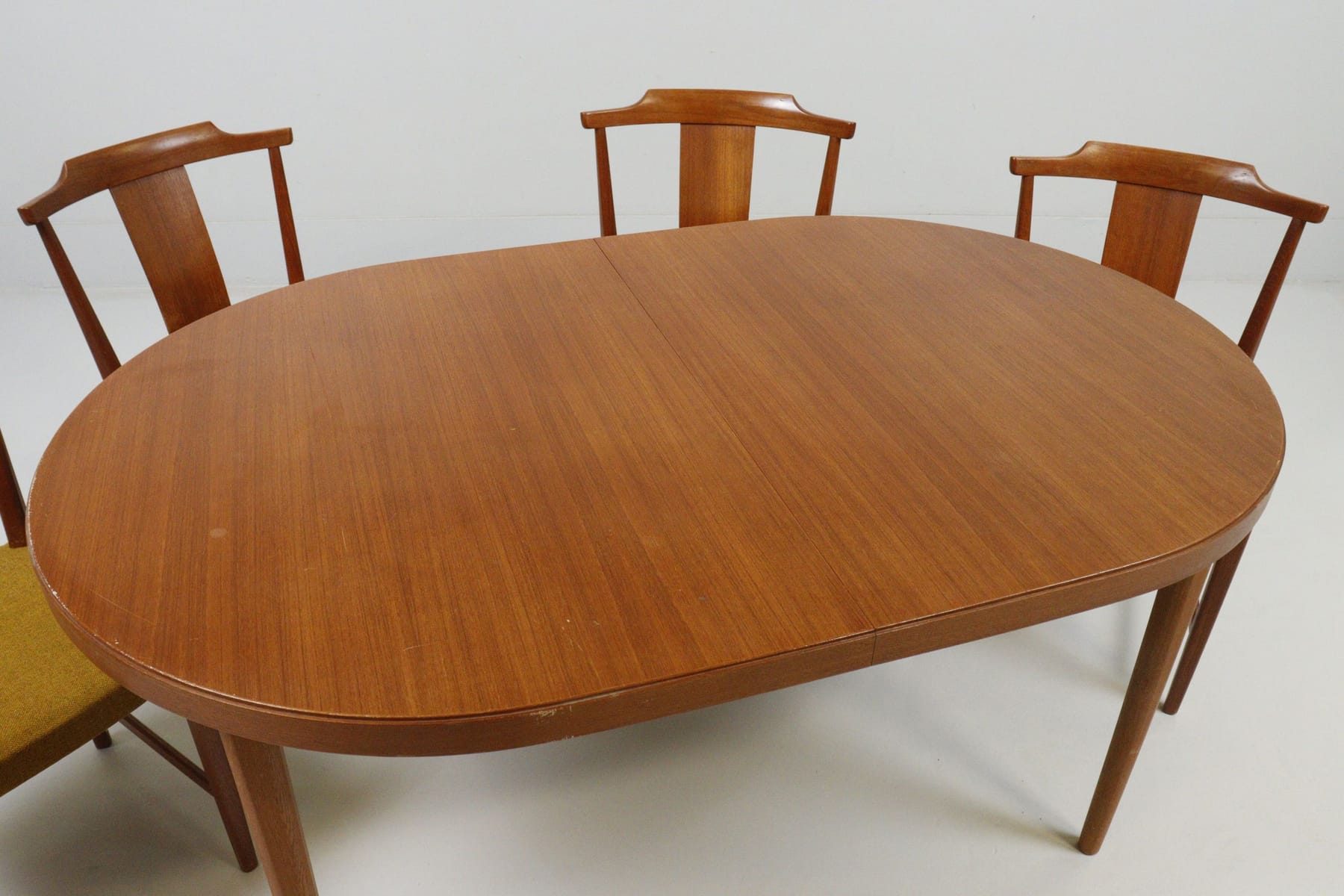 Matgrupp, teak, Bertil Fridhagen, Bodafors, bord med 4 stolar och iläggsskivor, 2st