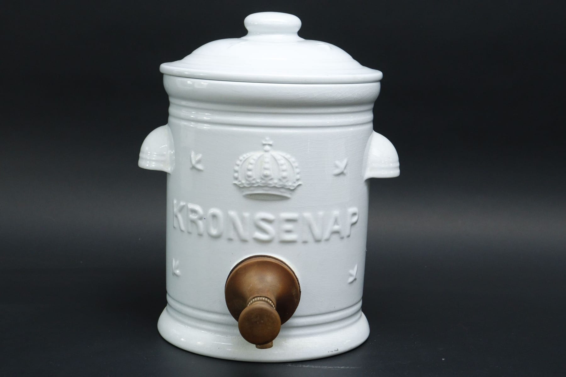 Senapsburk med pump, porslin, "Kronsenap"