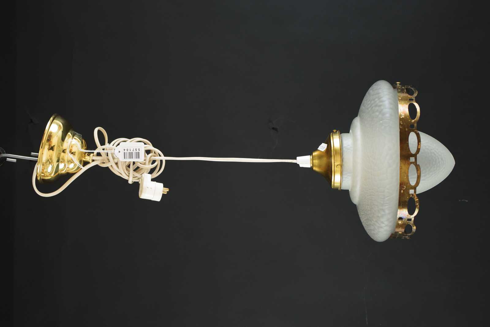 Bilder TAKLAMPA i glas & mässing, 1900 talets första hälft. D:23cm H:20cm