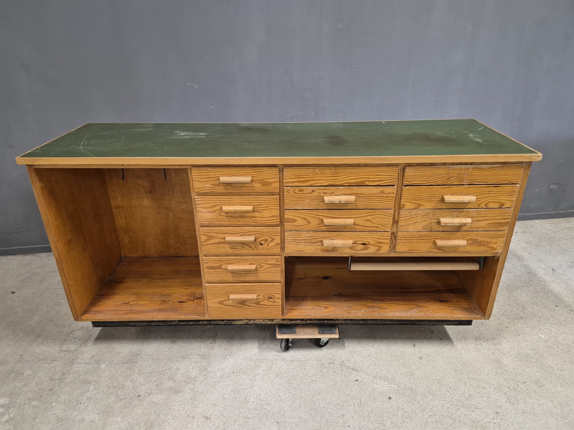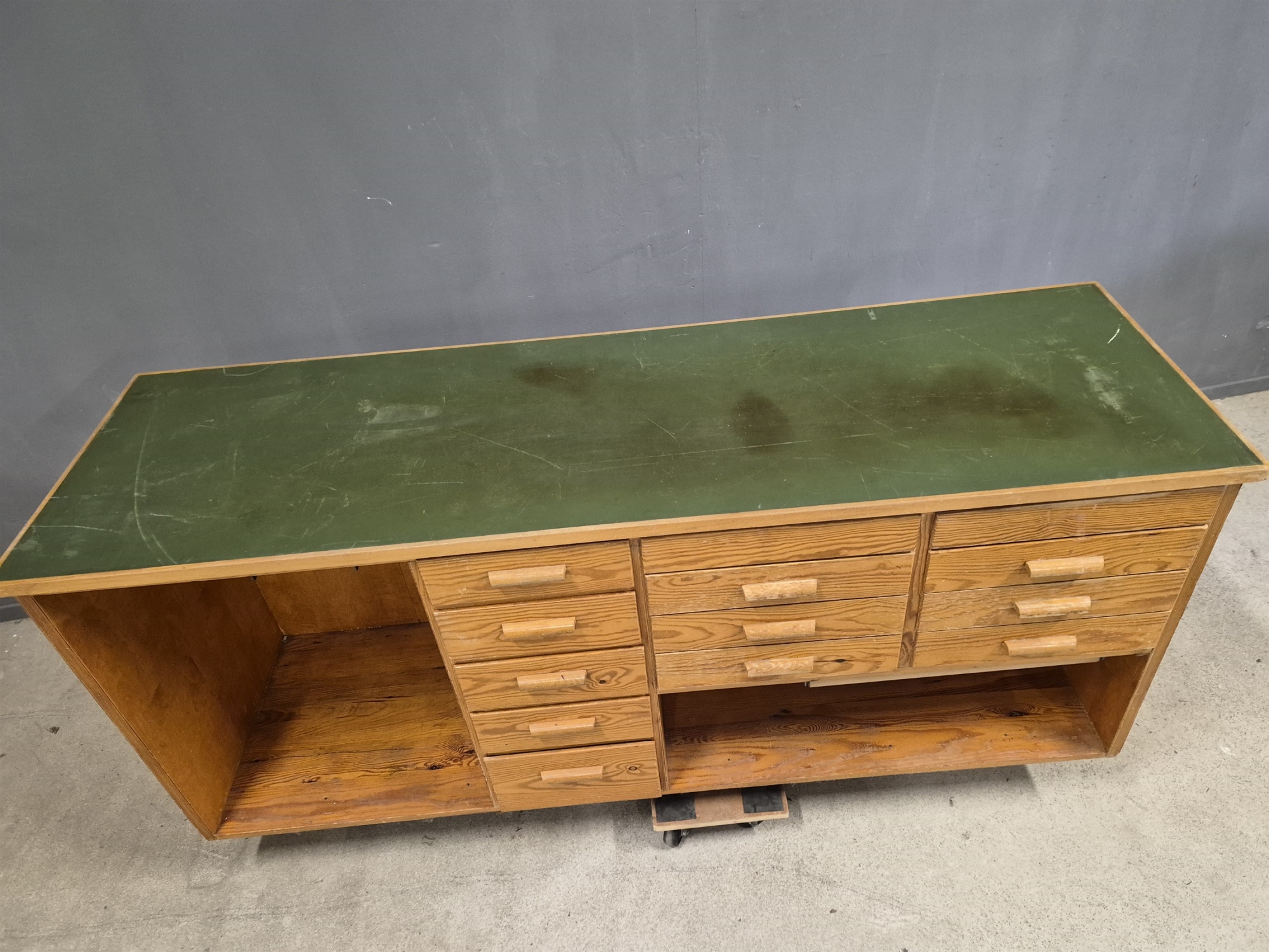 Affärsdisk, 1940 tal, höjd 90 cm, längd 200 cm, bredd 62 cm, skav finns