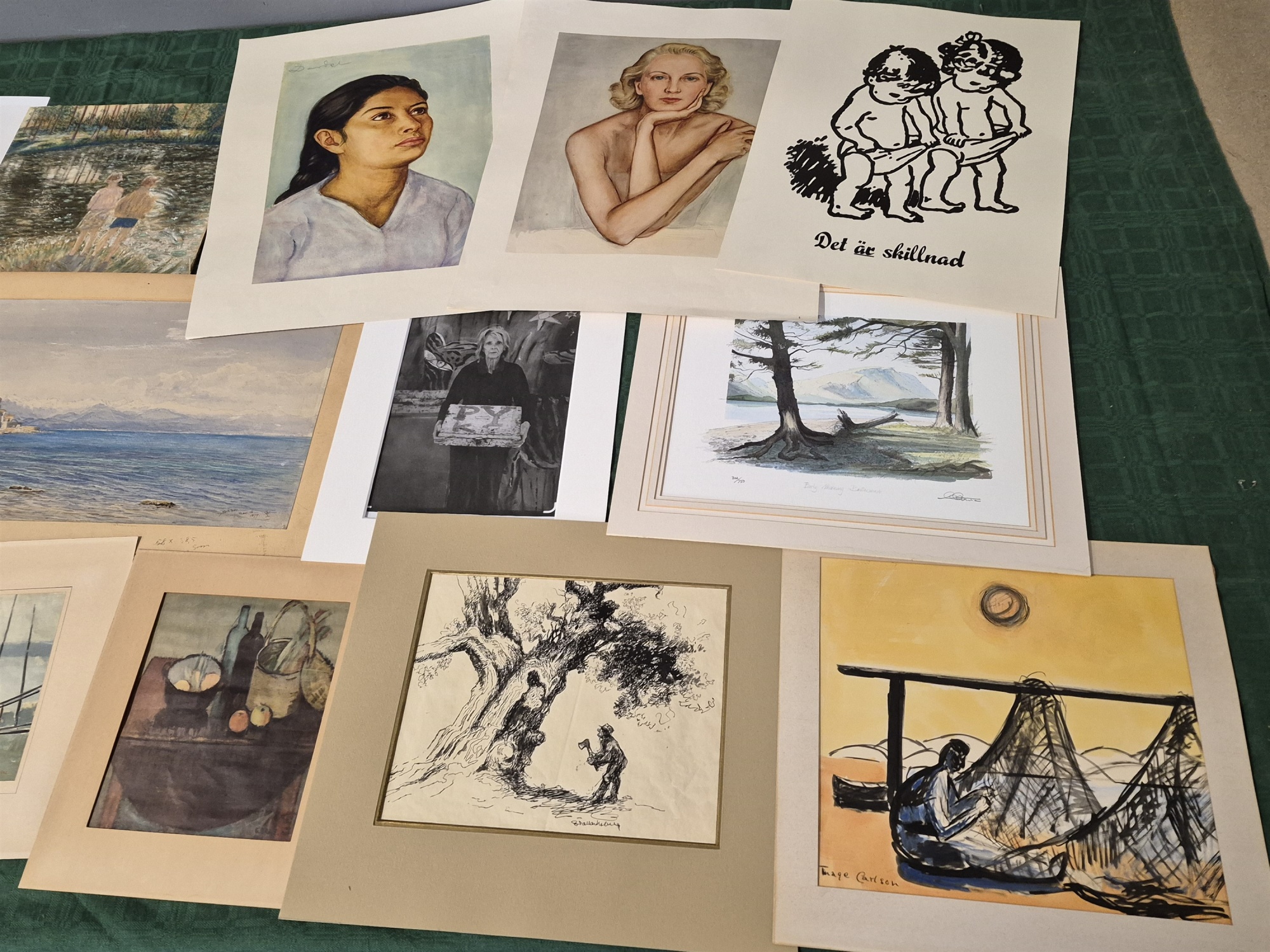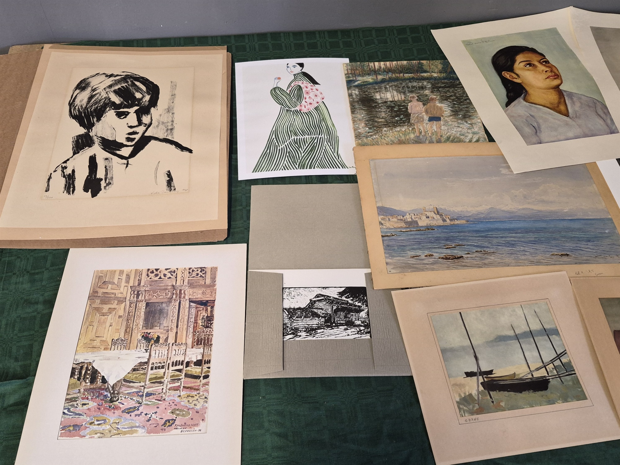Bilder Parti konstblad, bl.a akvareller, teckningar största 58 x 46 cm