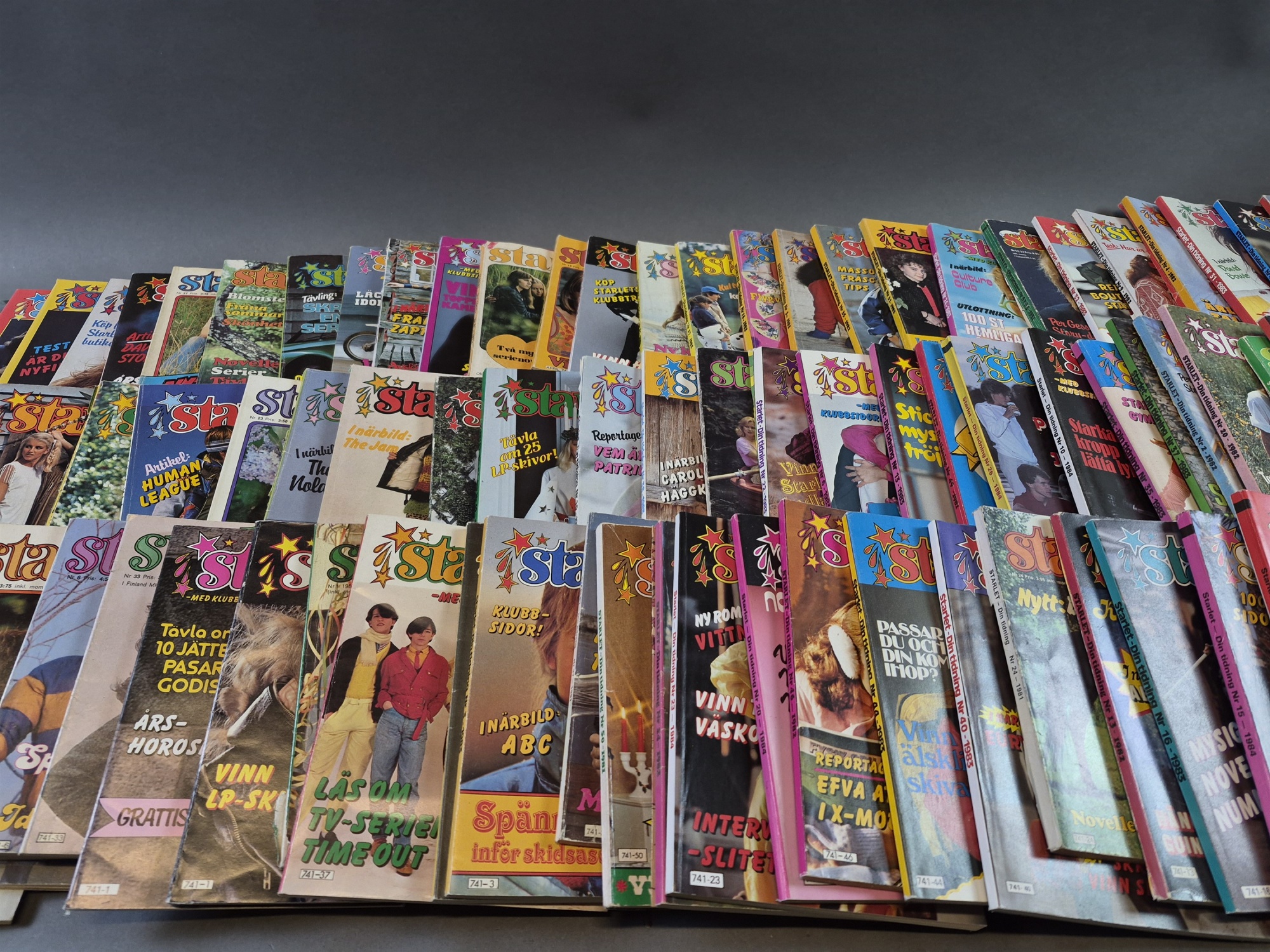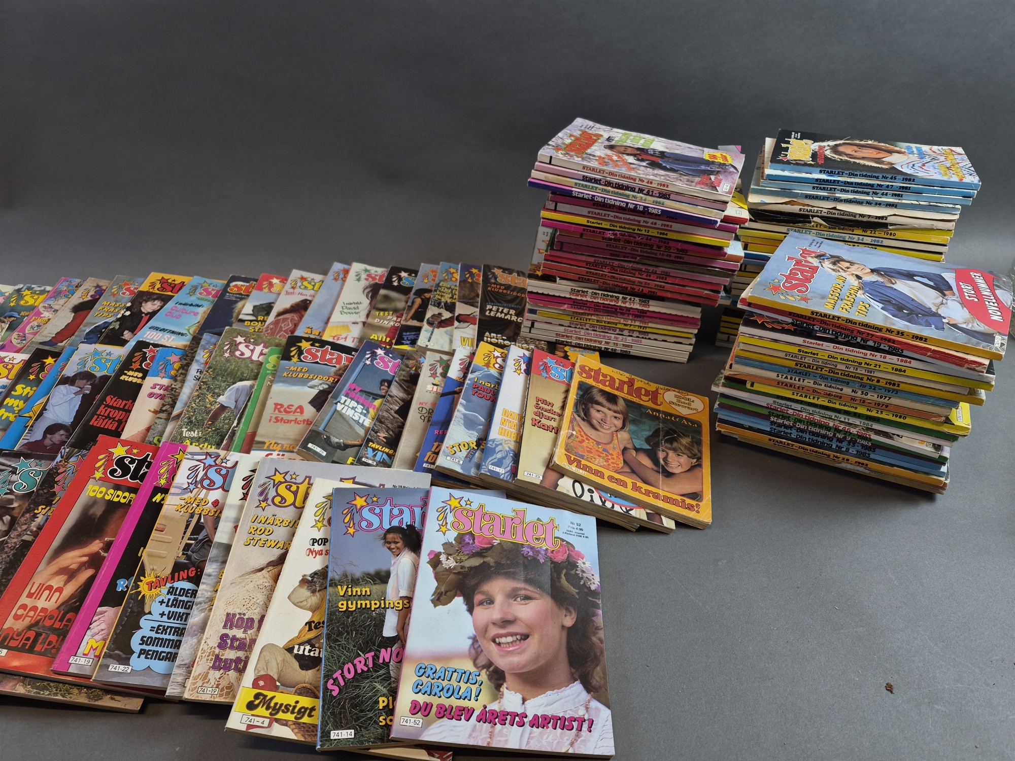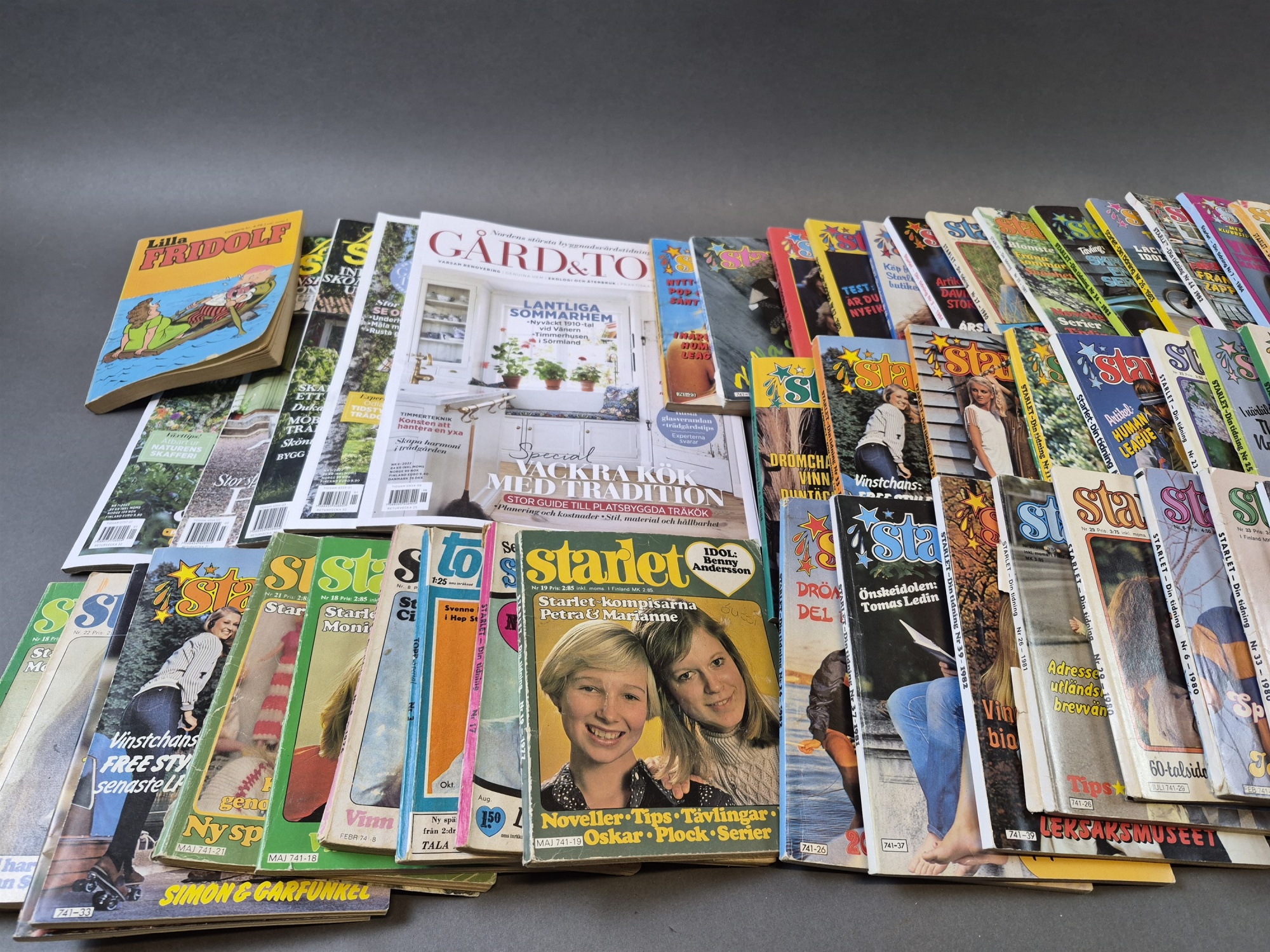 Parti Starlet tidningar, urklippta baksidor finns