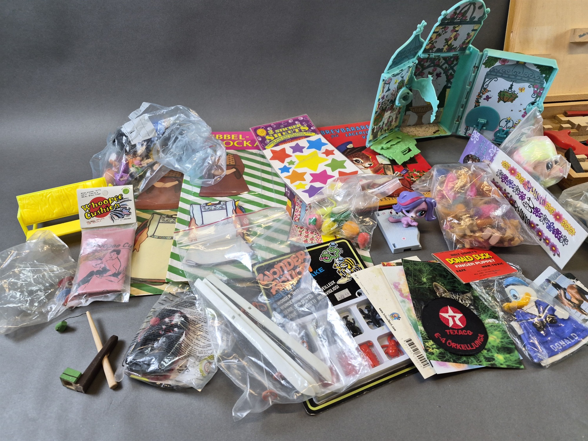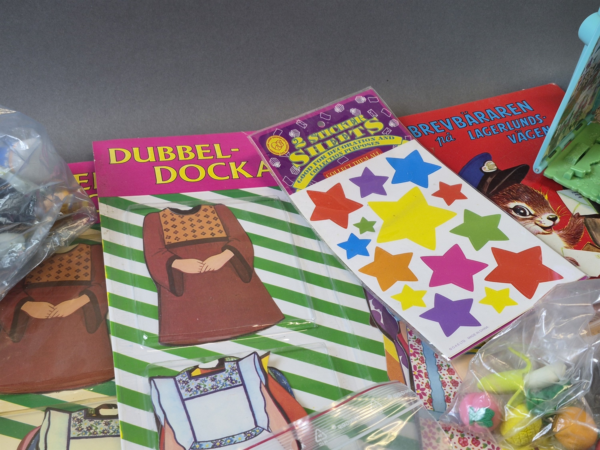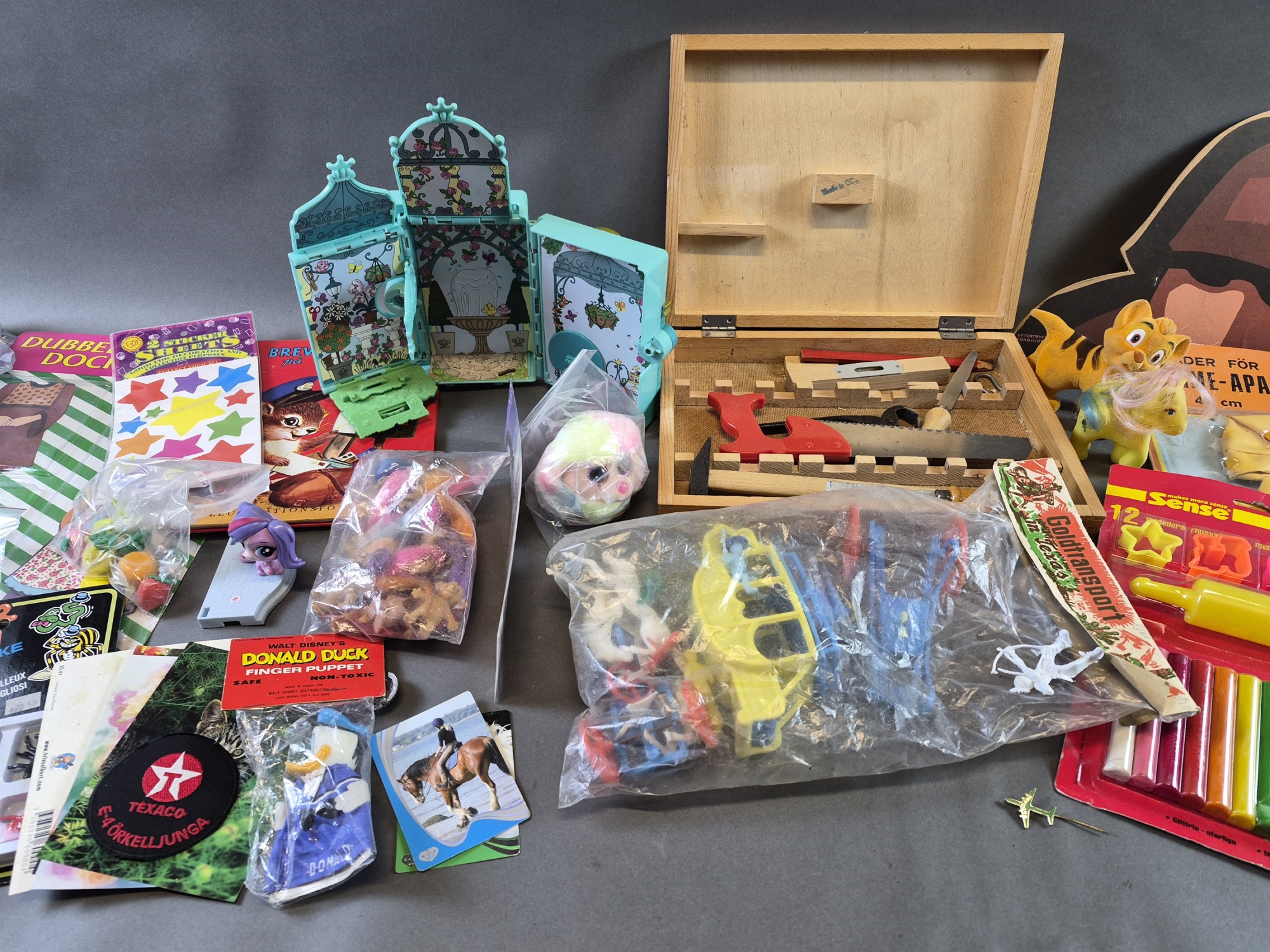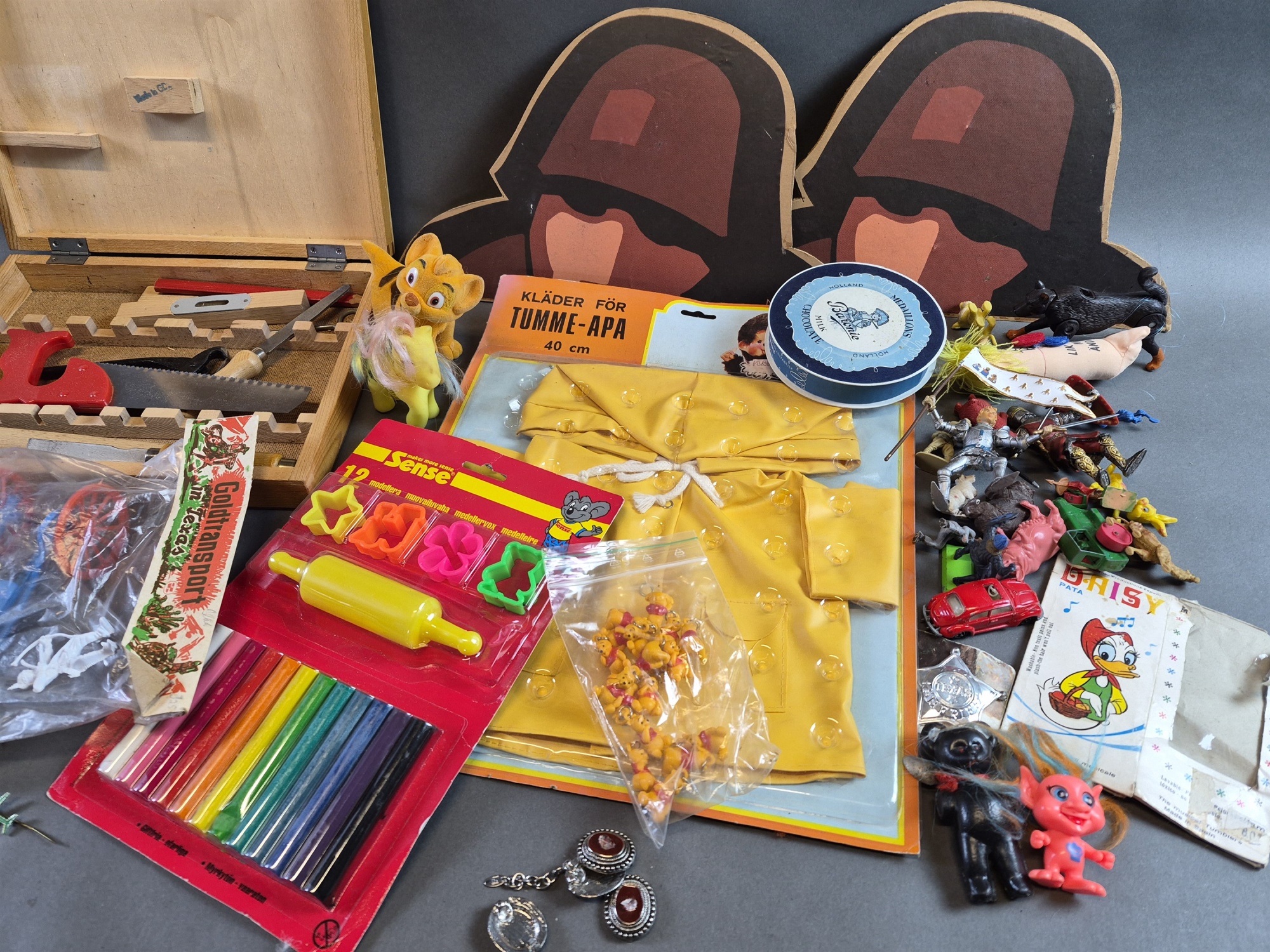 Bilder Parti leksaker bla klippdockor, troll och snickeriset