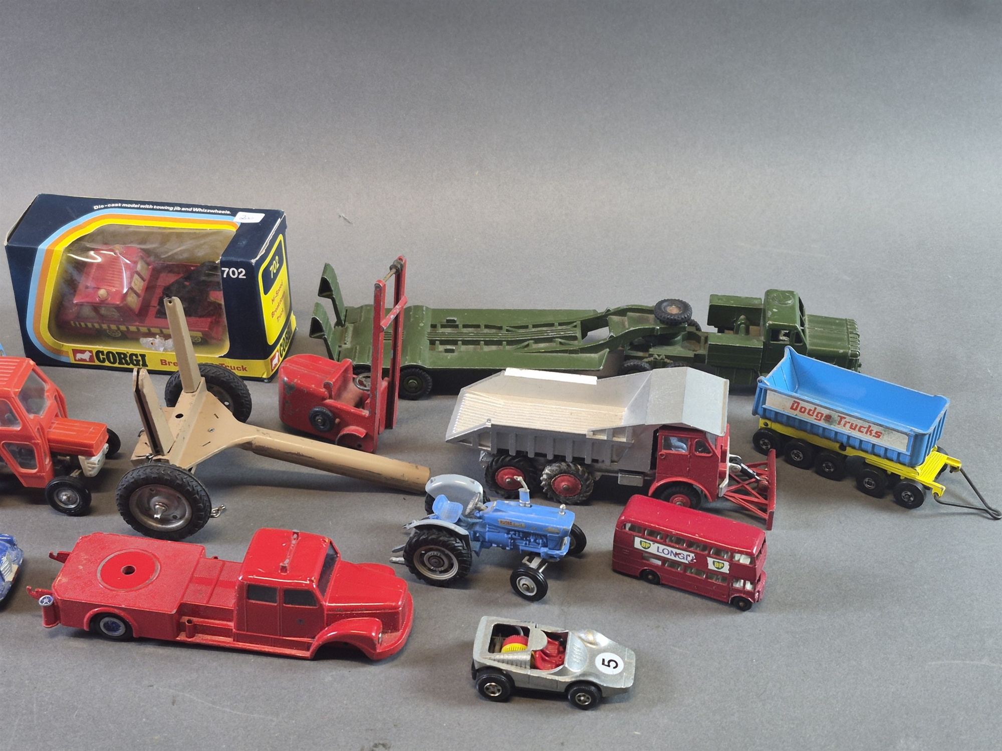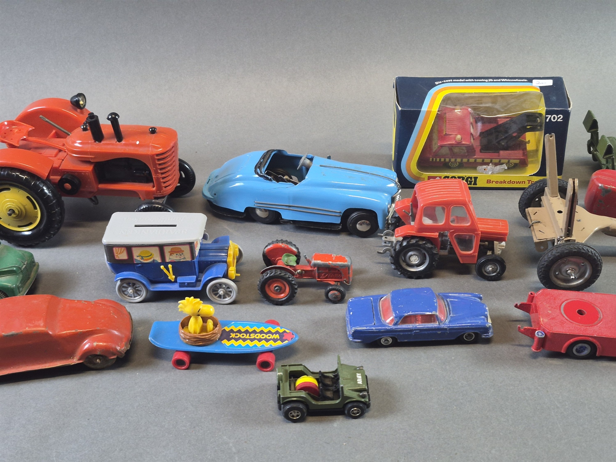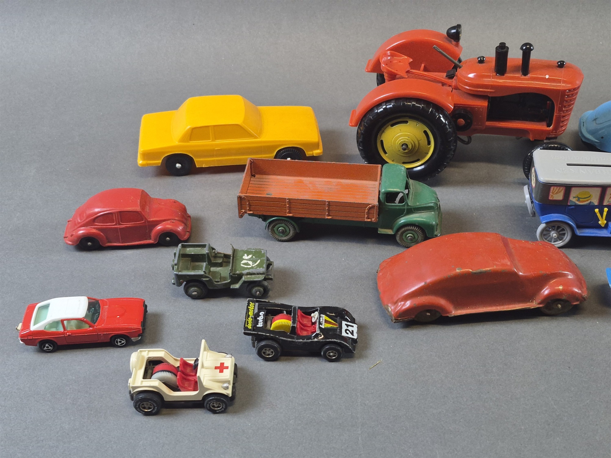 Parti leksaksbilar bla Tri-Ang och Corgi, defekter finns, längsta mått 30 cm