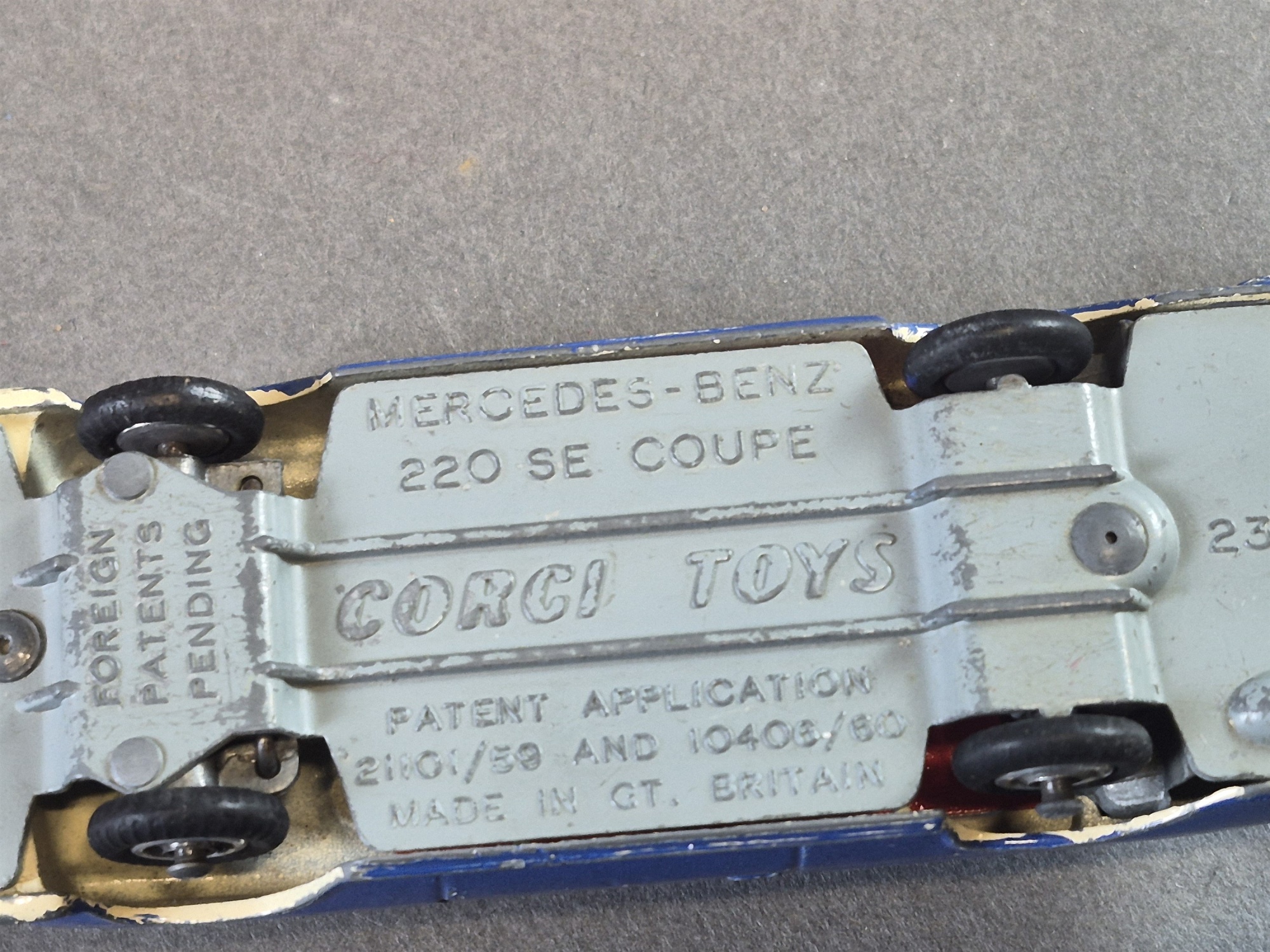 Bilder Parti leksaksbilar bla Tri-Ang och Corgi, defekter finns, längsta mått 30 cm