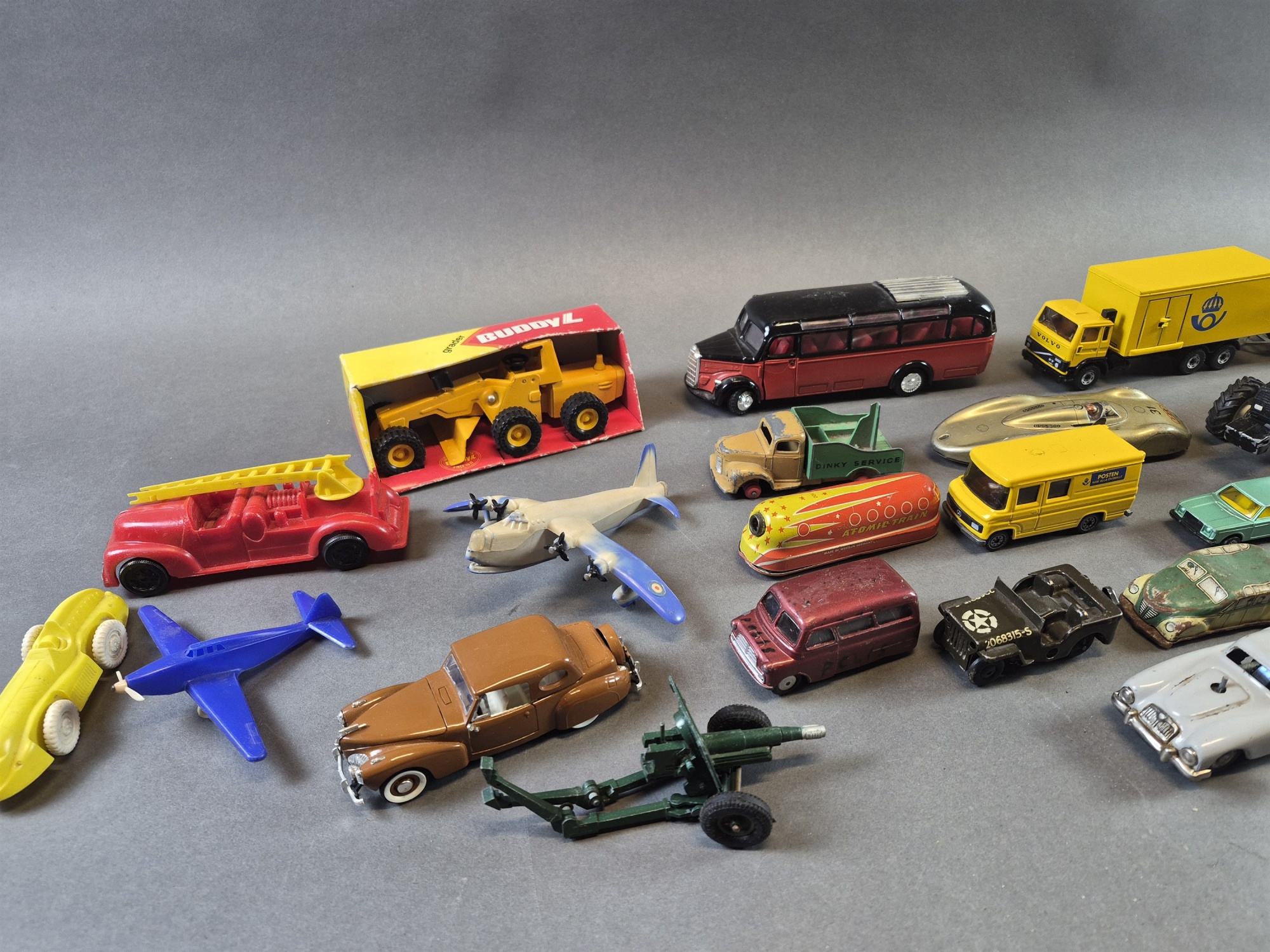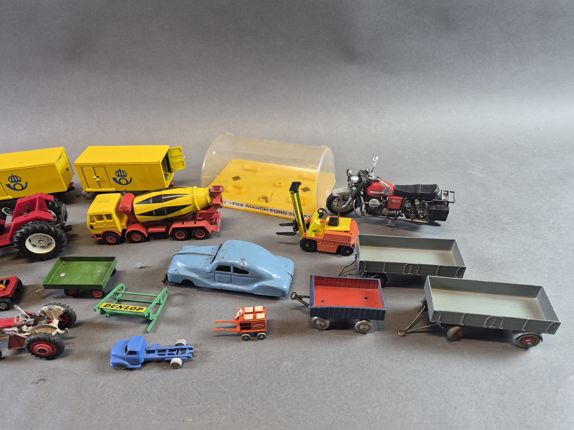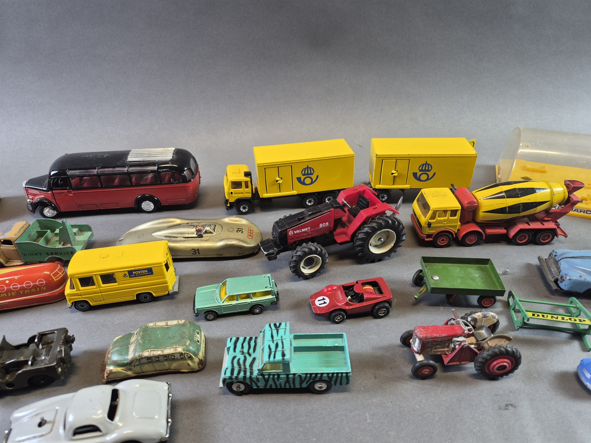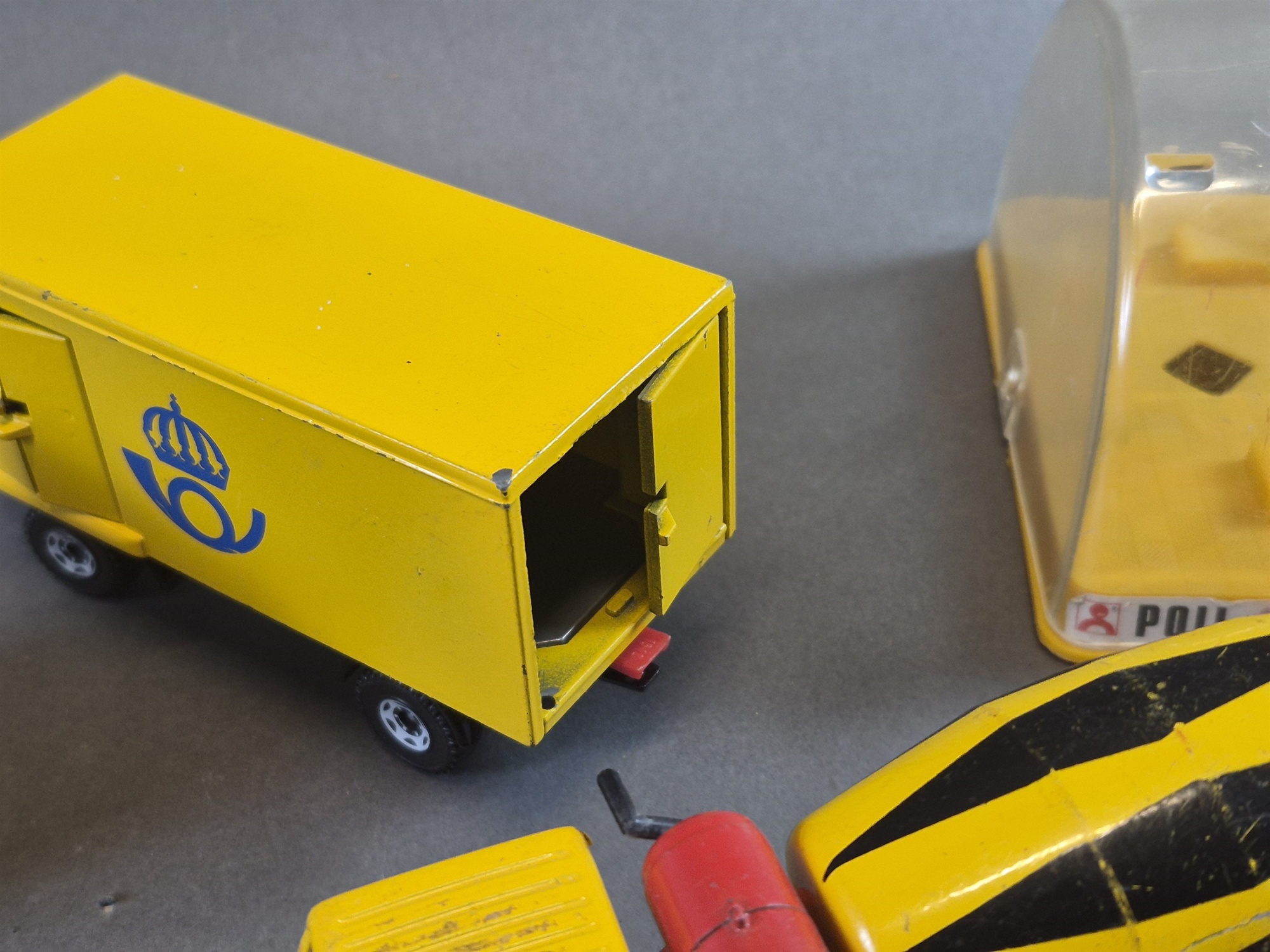 Parti leksaksbilar bla Siku postbil och Corgi, defekter finns, längsta mått 21 cm