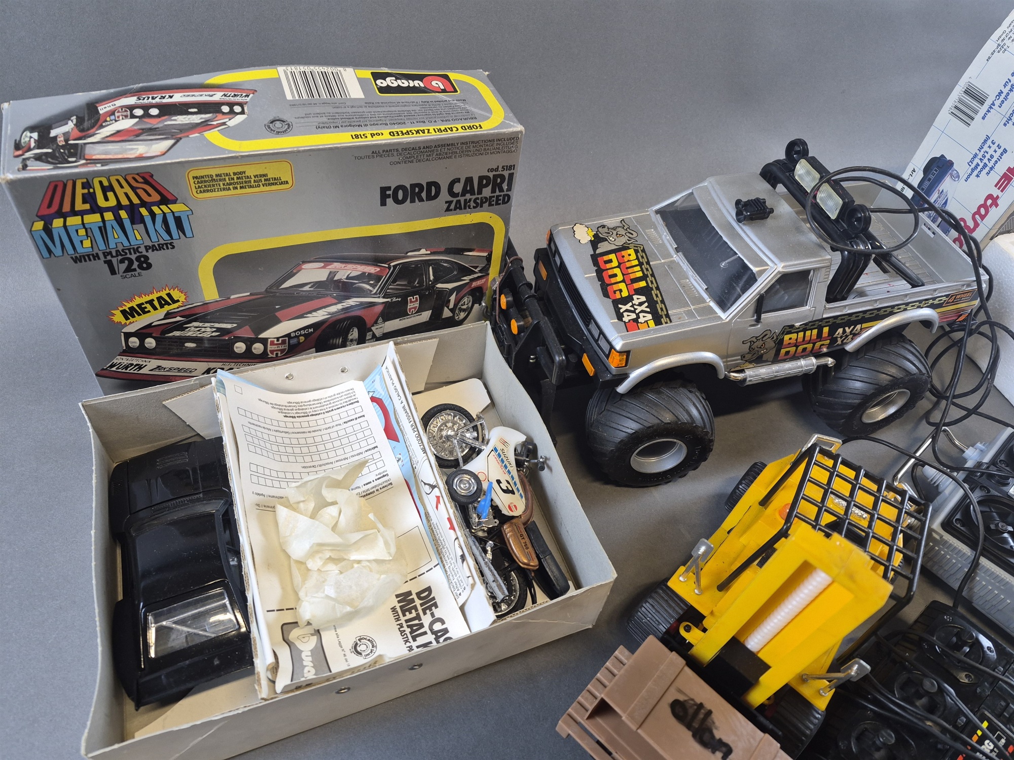 Radiostyrda bilar och truck, ej testade, okänd funktion, längsta mått 35 cm