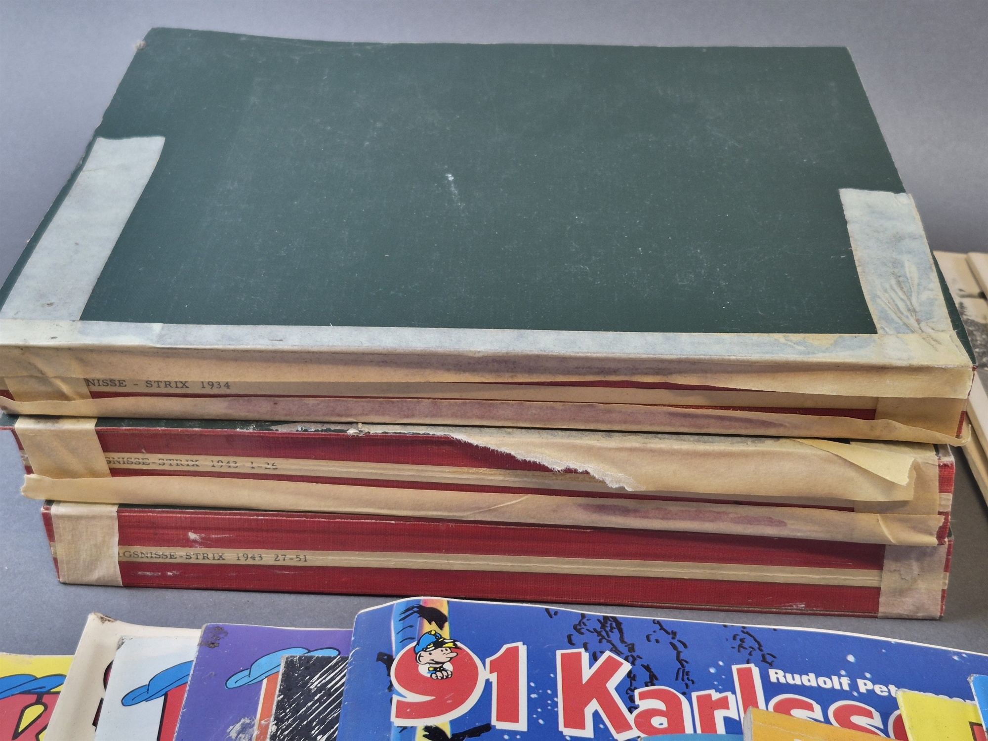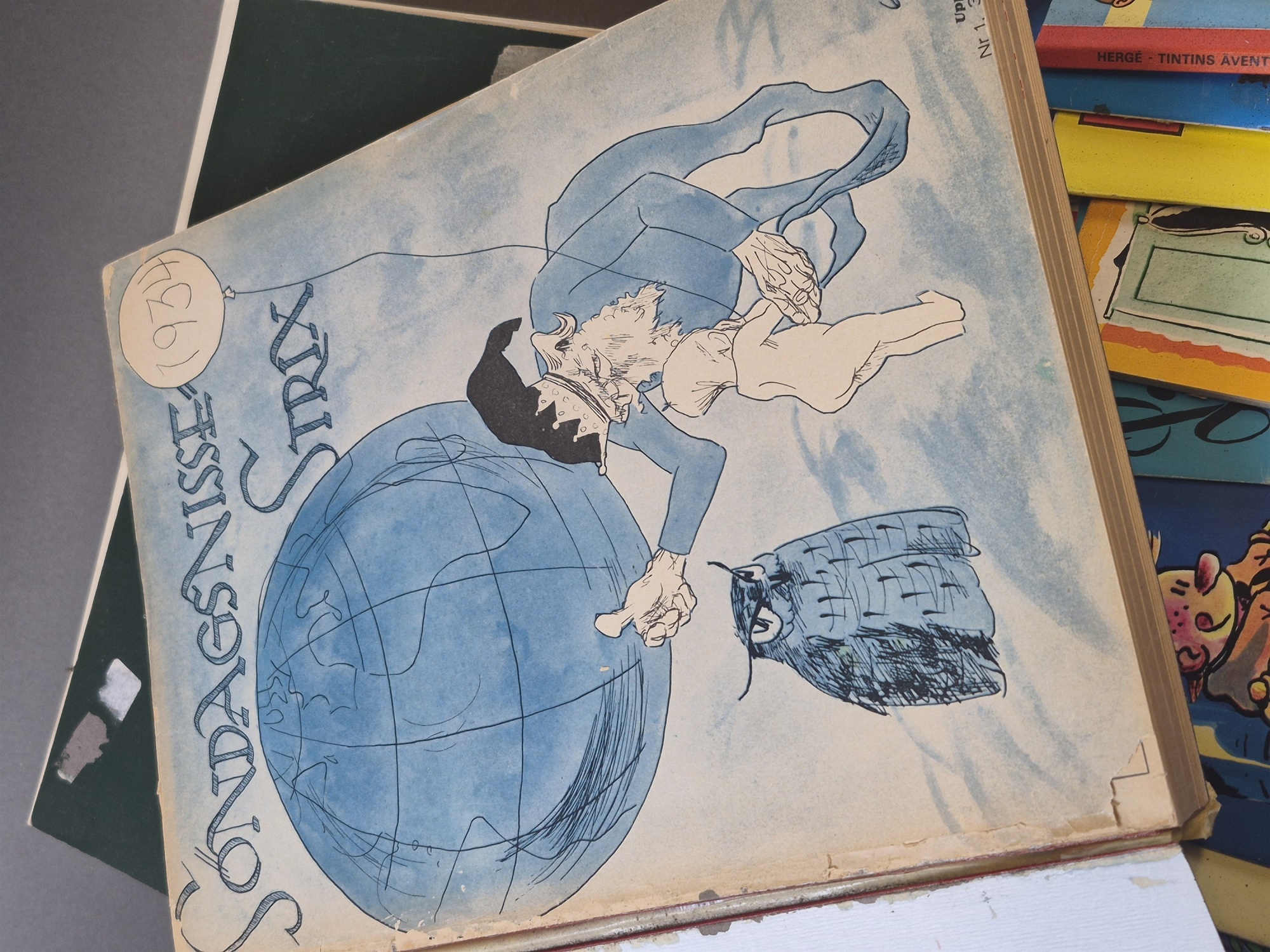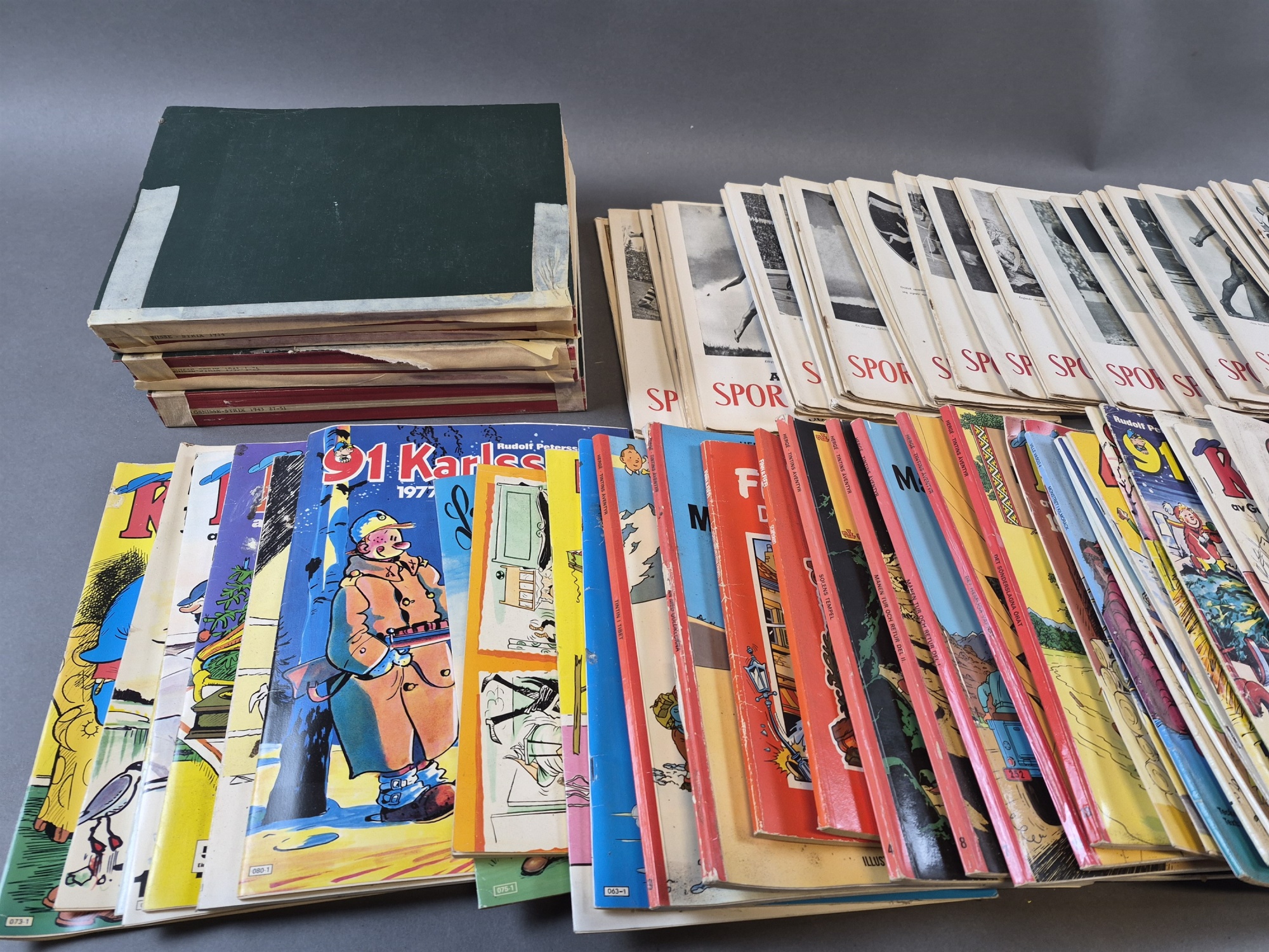 Bilder Parti tidsskrifter, serietidningar och blad bla Söndagsnisse Strix, Allhems Sportlexikon och Tintin