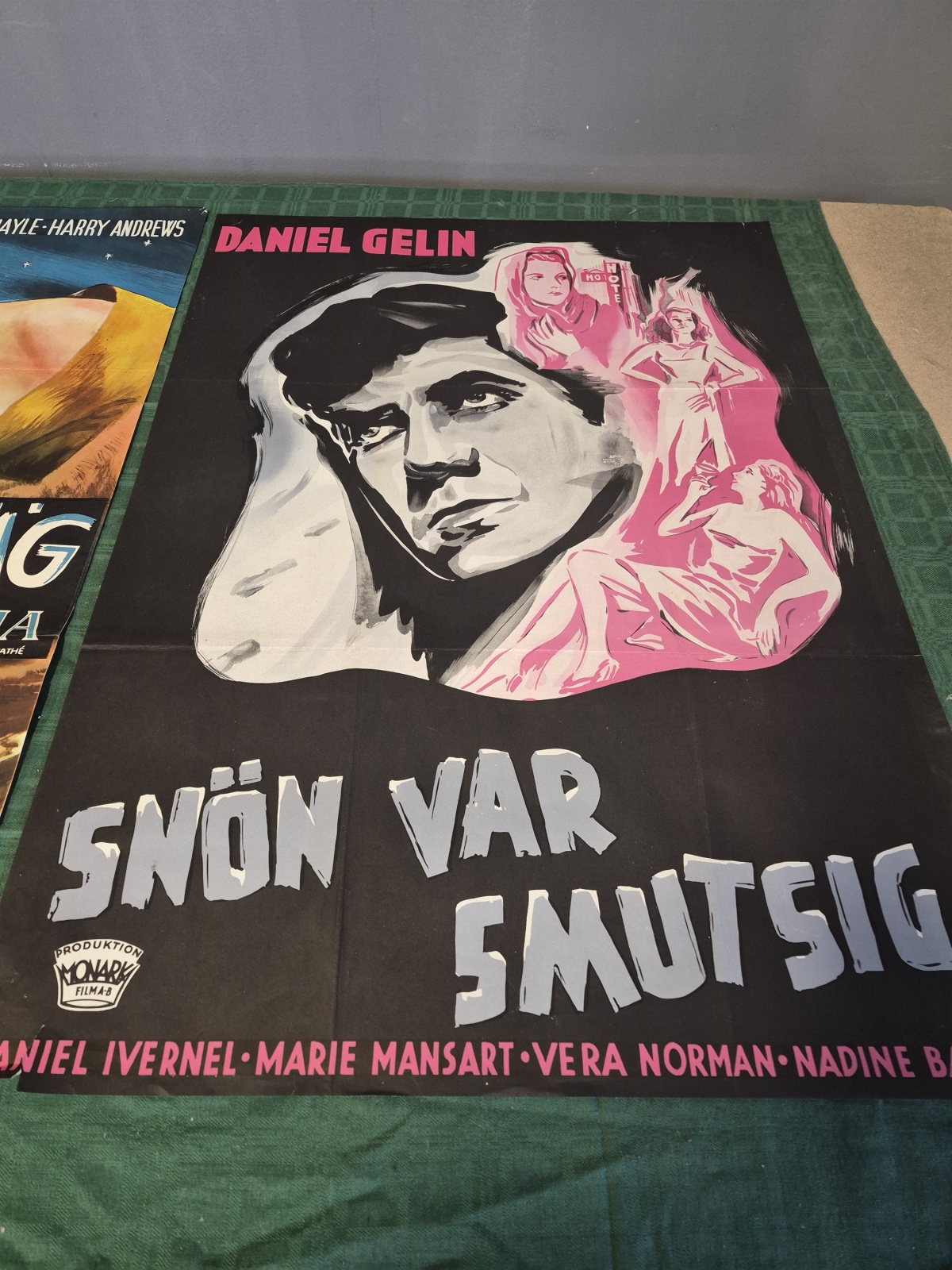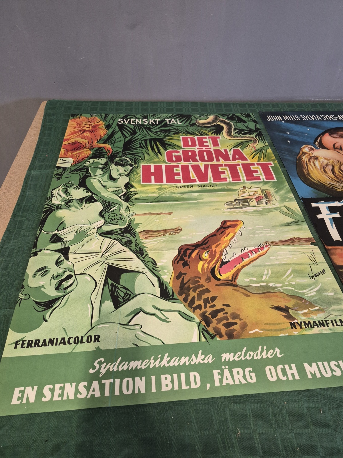 Bilder Filmposters 3 st; Det gröna helvetet, Fruktans väg och Snön var smutsig, revor finns, mått 100x70 cm