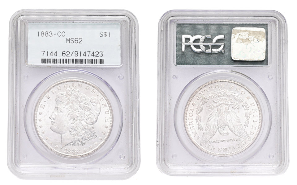 USA. Dollar 1883CC. KM 110. Hanteringsmärken. Rengjord. Bag marks. Cleaned. I PCGS-kassett (7144.62/9147423) graderad MS 62.