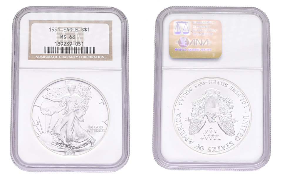 USA. Dollar 1991. KM 273. I NGC-kassett (189239-051) graderad MS 68.