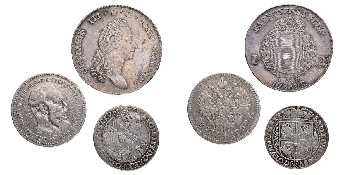 POLEN/POLAND: Ort 1621. RYSSLAND/RUSSIA: Rubel 1892. SVERIGE: Riksdaler 1792. Totalt 3 ex.