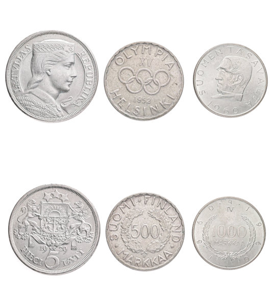 LETTLAND/LATVIA: 5 lati 1929. FINLAND: 1000 markkaa 1960, 500 markkaa 1952. Totalt 3 ex.