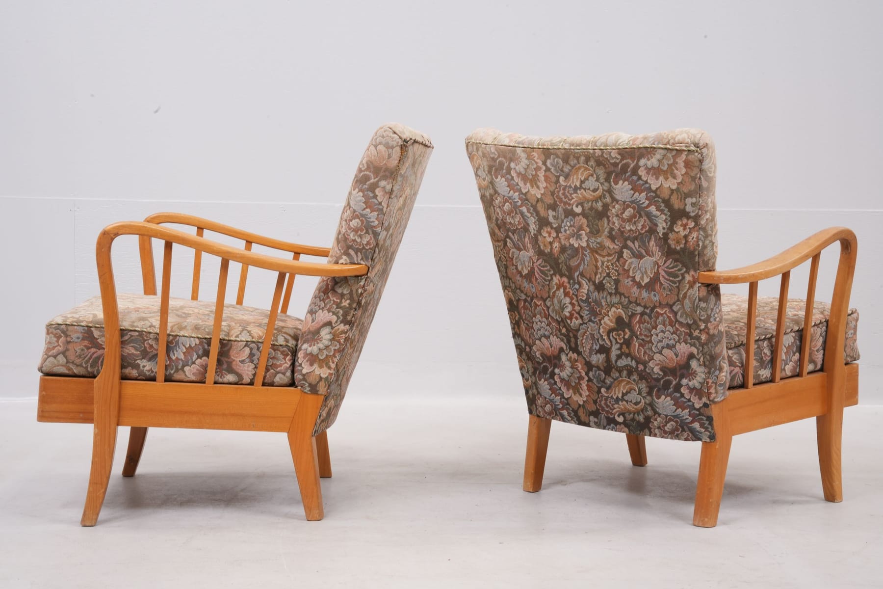 Bilder KARMFÅTÖLJER, ett par, alm, Swedish Modern, 1940-tal