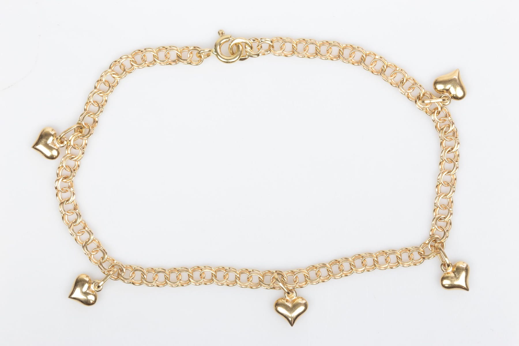 Bilder ARMBAND, bismarck, med BERLOCKER, fem st, hjärtan, guld, 18 k, ca 4,11 g, GHA