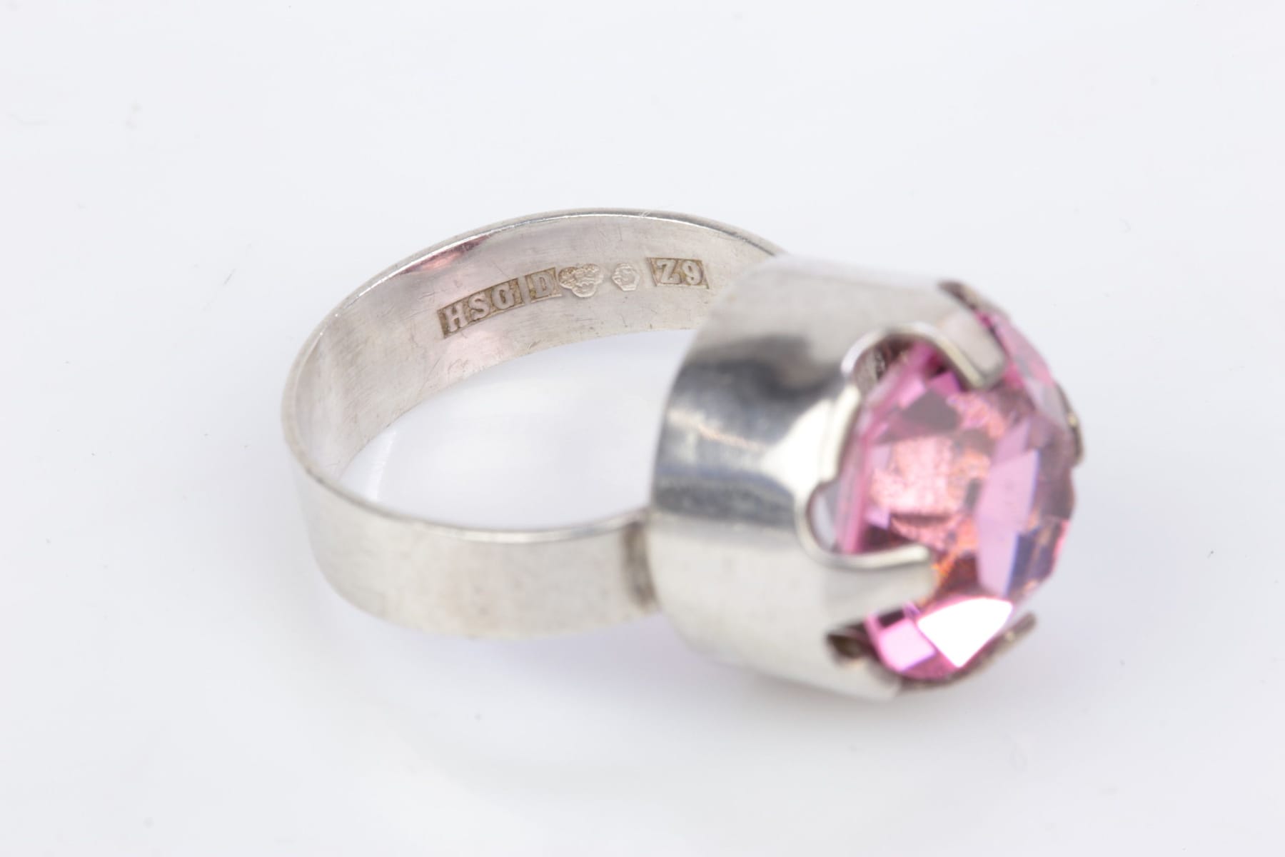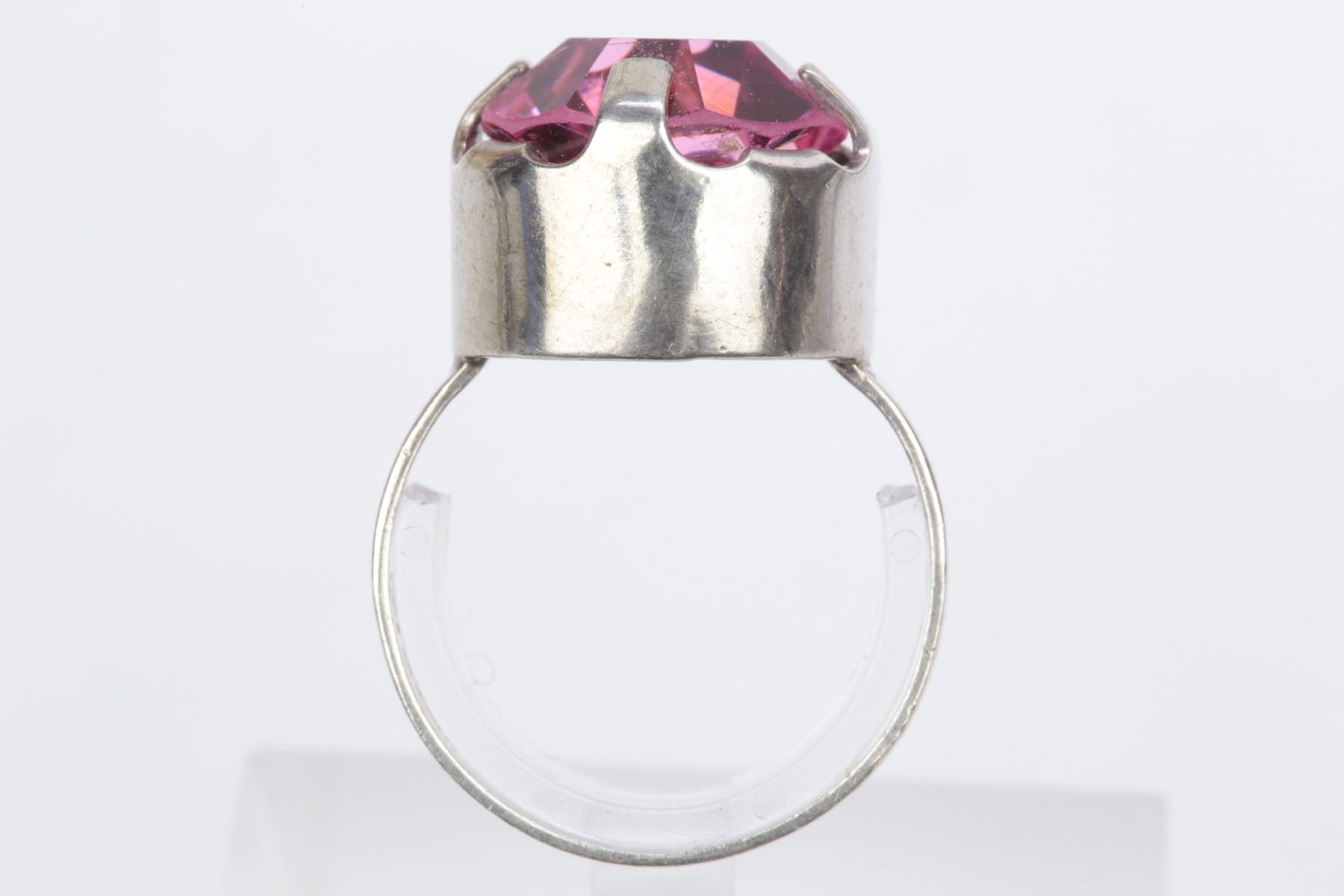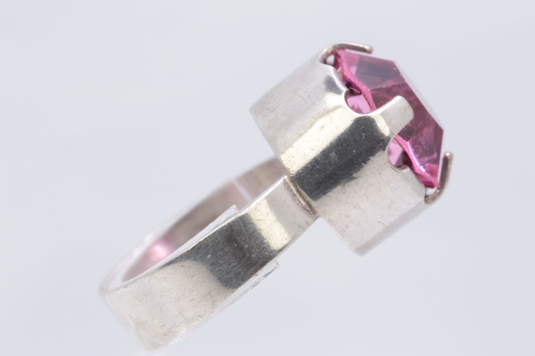 Bilder COCKTAILRING med rosa sten, silver, Hedbergs Guld, Dalsjöfors, 1974